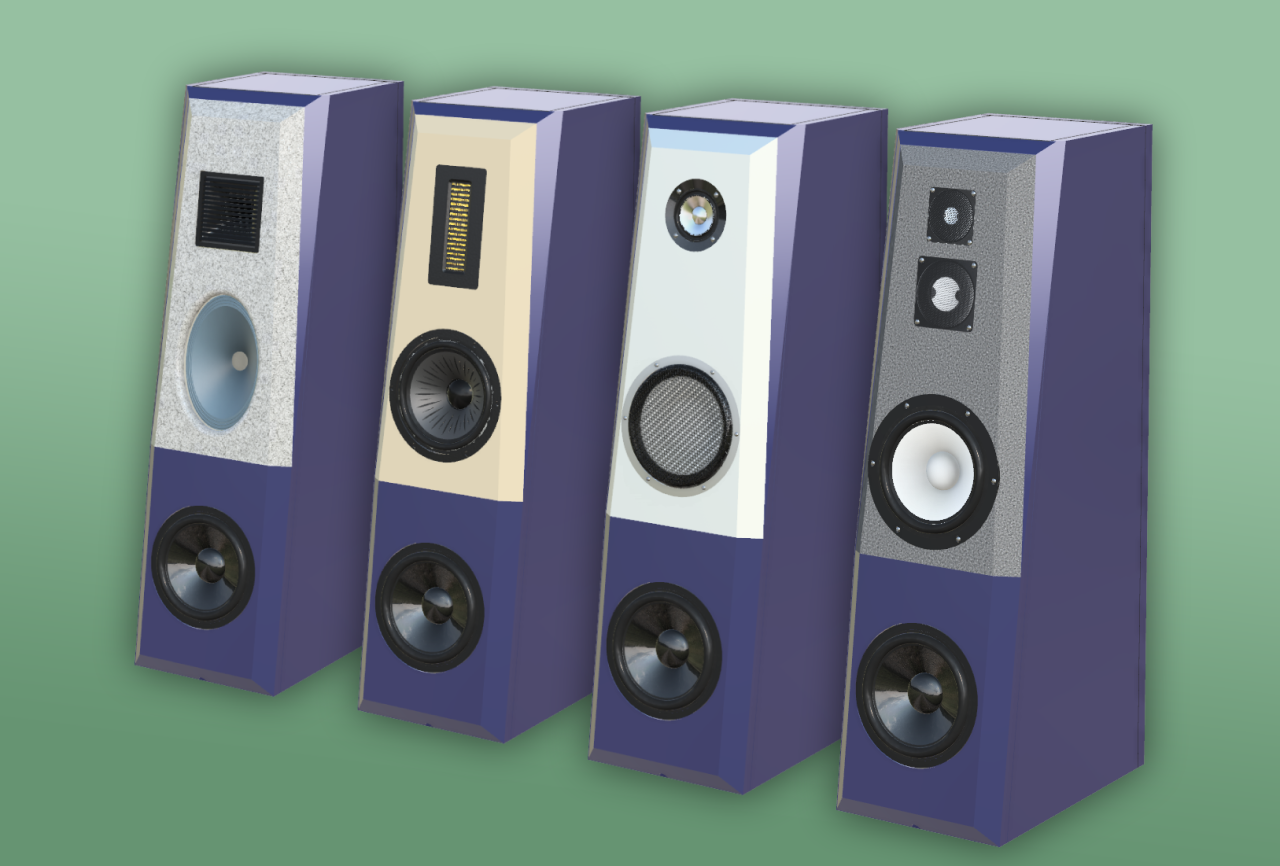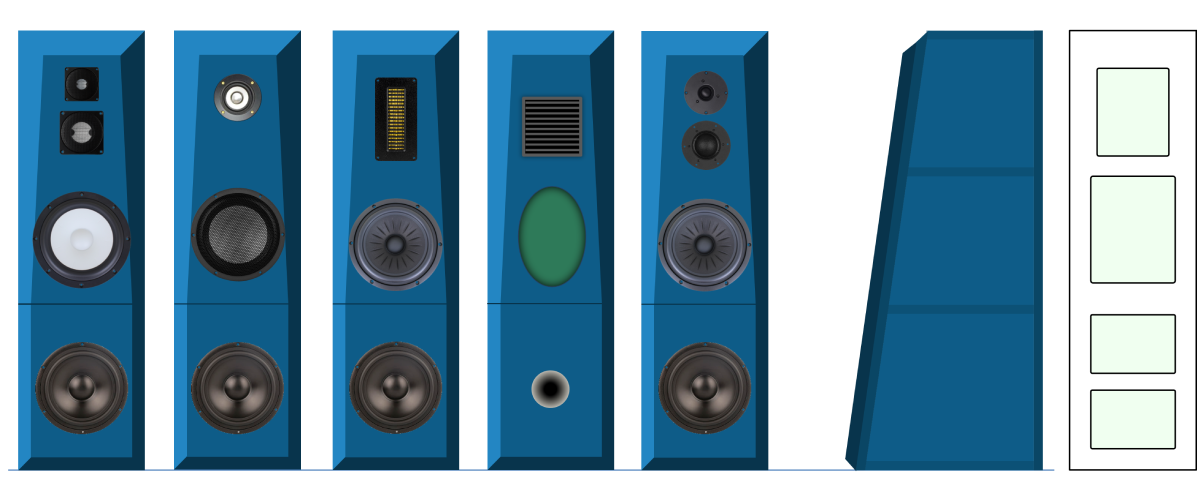 実は、エンクロージャーが共通で、5種のドライバーセットを切り替え、5種のスピーカーシステムを楽しめる。バッフル交換型で構成します。