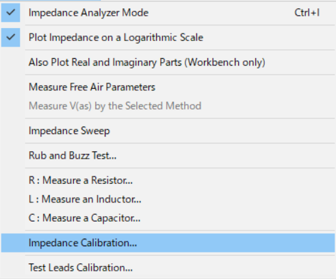 [Impedance Analyzer] → [Test Leads Calibration…]