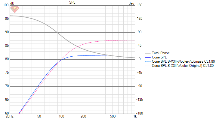 じゃ、Add Massしたウーファーで、f特がどう変動するかも見ておきましょう。