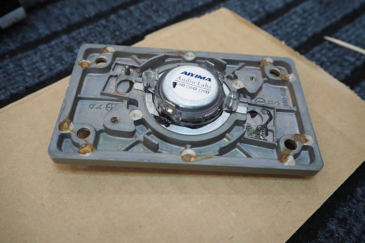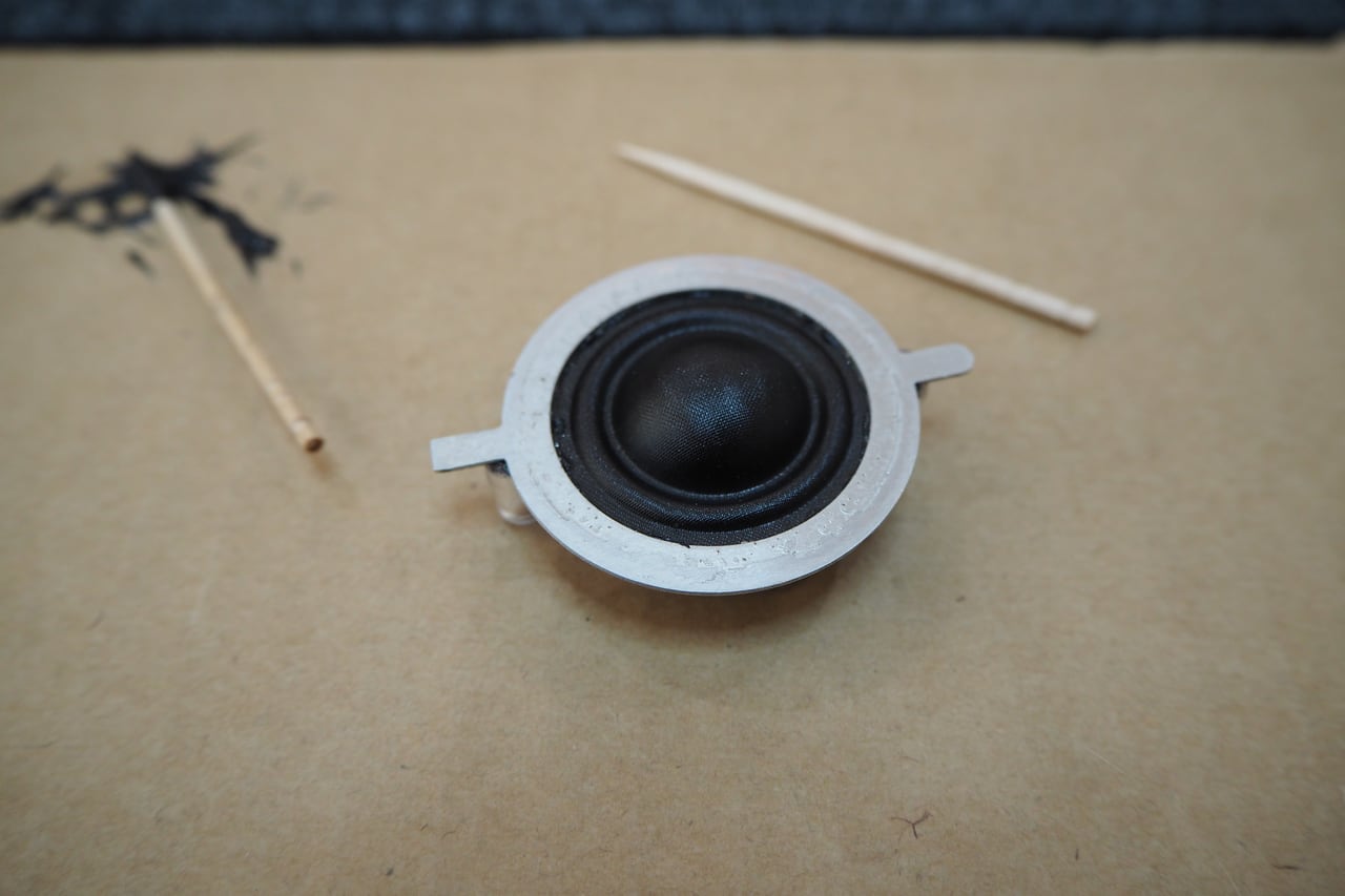 口径や能率さえ合えば、旧式スピーカーの潰れたトゥイーターを復旧することも出来る、というわけです。(もちろん、音質はオリジナルとは違いますよ!)