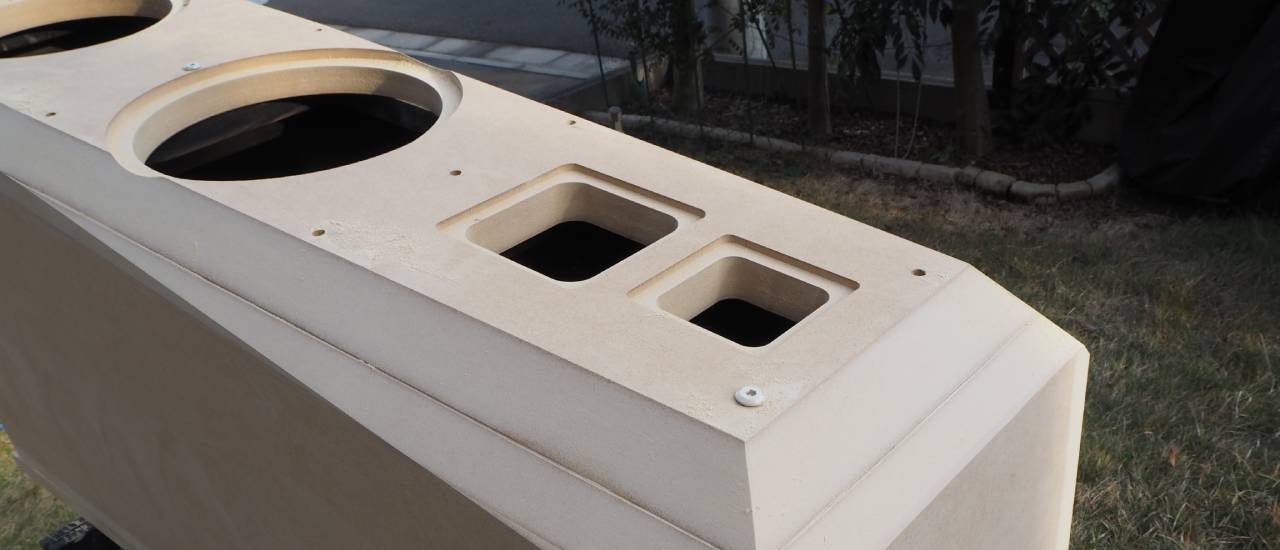 さぁてと、夏の終わりに痛めた腰も復活。そろそろAndromedaの制作も再始動です。 腰が悪いと重量級スピーカーはしんどいですね。外観整形の最終加工。バッフルのカッタウェイに着手します。具体的には、赤色の部分をルーターと … 続きを読む ANDROMEDA (7) バッフルのスラント・カッタウェイ