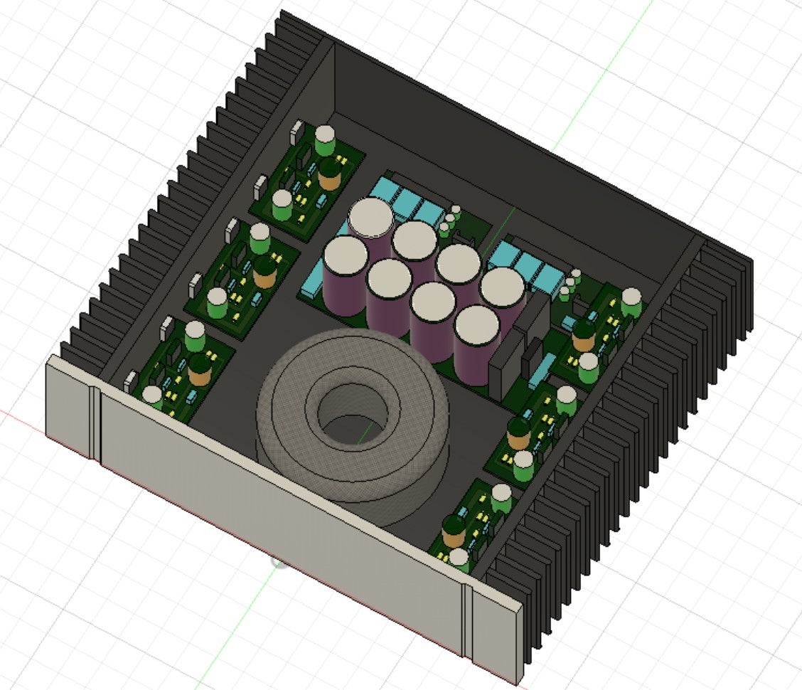 3Dモデリングを使って、6ch自作パワーアンプのレイアウトを考え始めました。