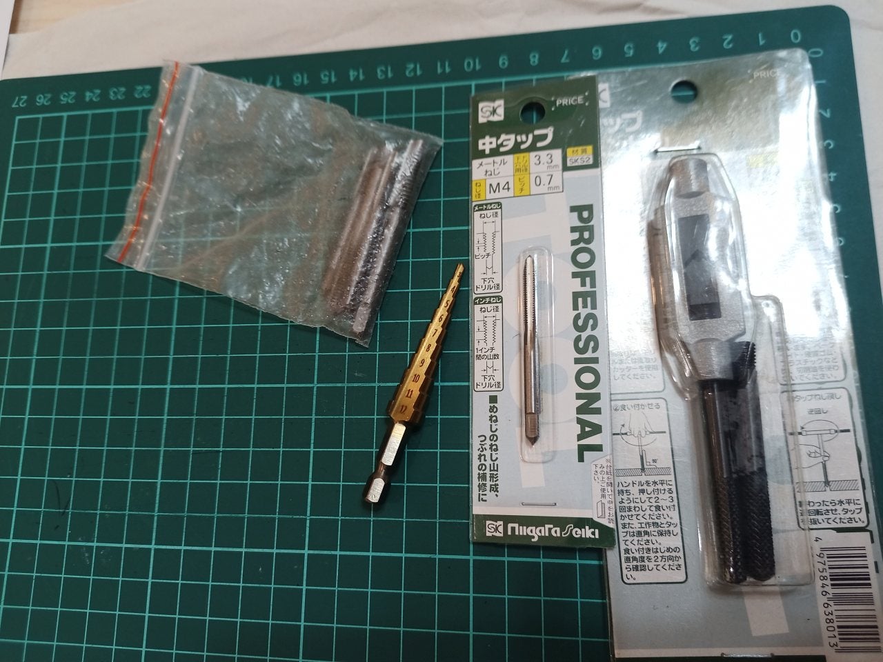 ビス穴を開けるのも神経使うが、タッピングはそれの比ではない。4穴切っただけでドッと疲れました。
