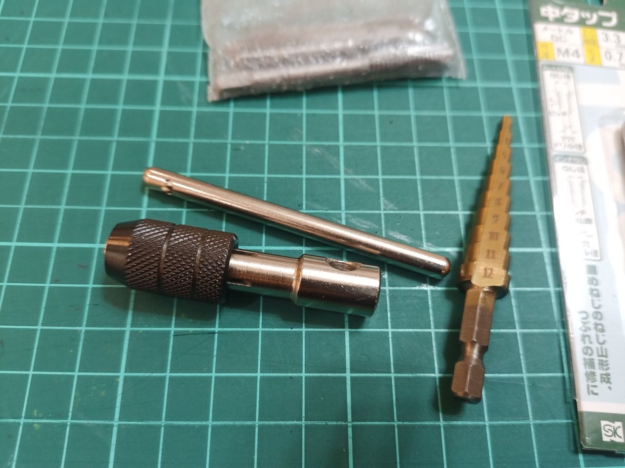 シャシン右側は、Φ12mmまで空けられるステッピングドリルですね。