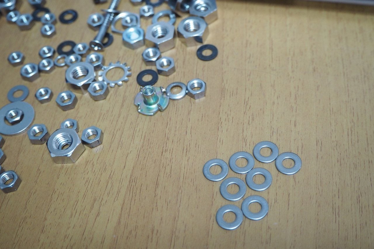 箱をひっくり返して、ようやく使えそうなスペーサーを4個確保。自宅をホムセンにでもしない限り、この不足は続くのでしょう(笑)。
