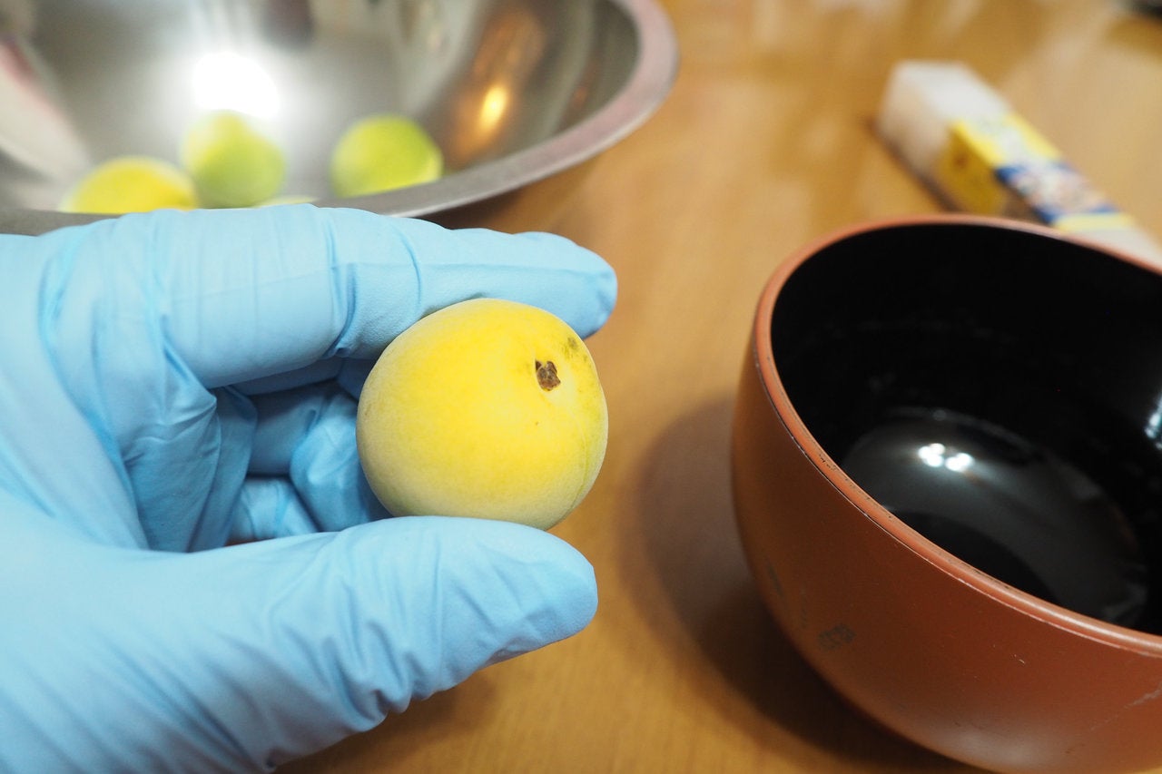 程度の良い梅は、力を入れなくても軽い力でこのようにポロリととれて綺麗になります。