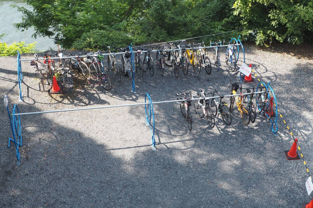 自転車を降り、手押しで臨時駐輪場へと向かいます。