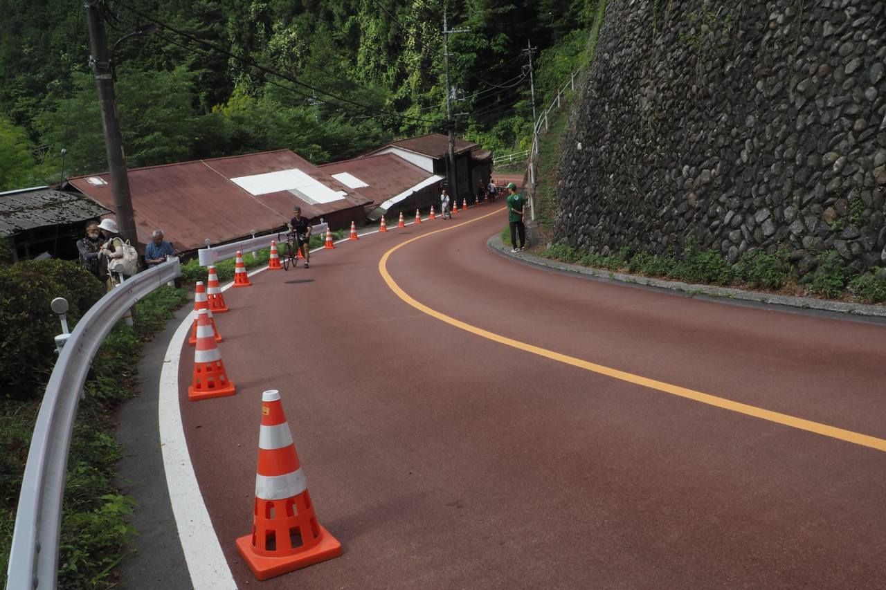 ここは観戦禁止区間なのでコーンが立っています。すみやかな移動が求められます。ここで大体6~7%かな。