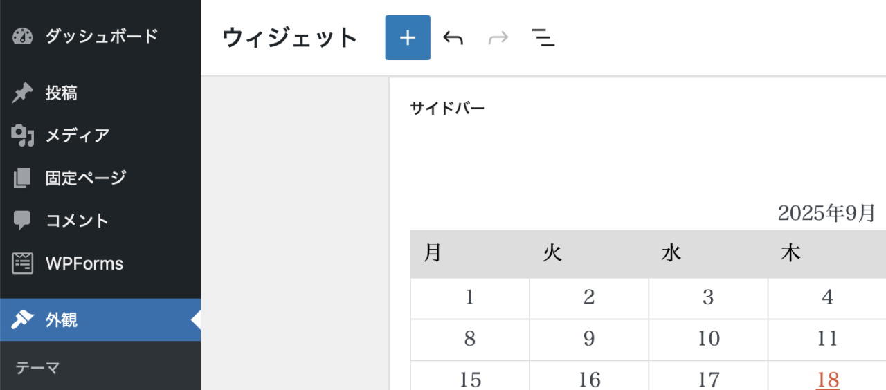 1. WPで ダッシュボード→外観→ウィジェット と操作します。