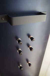 まずバックキャビティのバックプレートに、スピーカーターミナルを取り付けます。