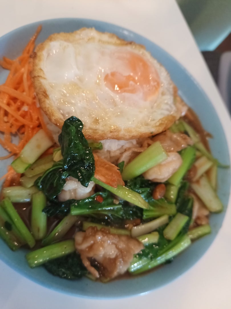こちらは、かみさんの食べてた青菜とチキンのガパオ。。。?名前忘れた。
