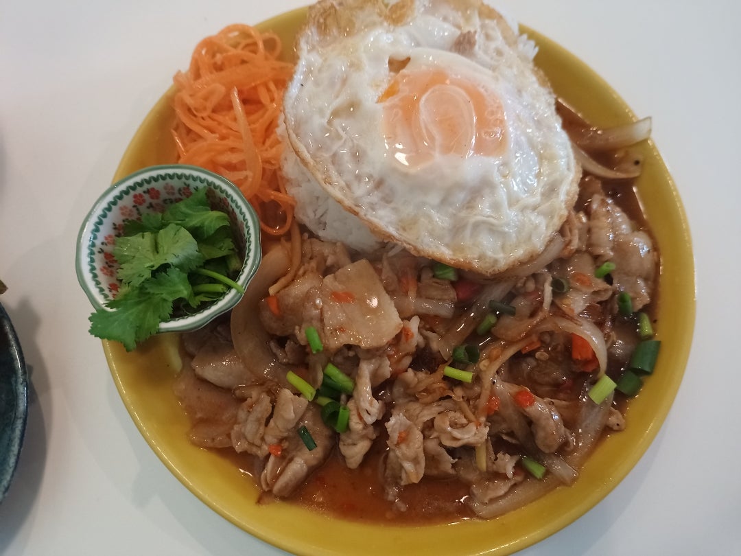 見た目も女子ウケしそうに美麗だが、お味もハンパない。どこが生姜焼じゃいと、日本のそれの片鱗もありません。甘くて、辛くて、とにかく吹っ飛ぶほど旨かった!こんなの初めて。
