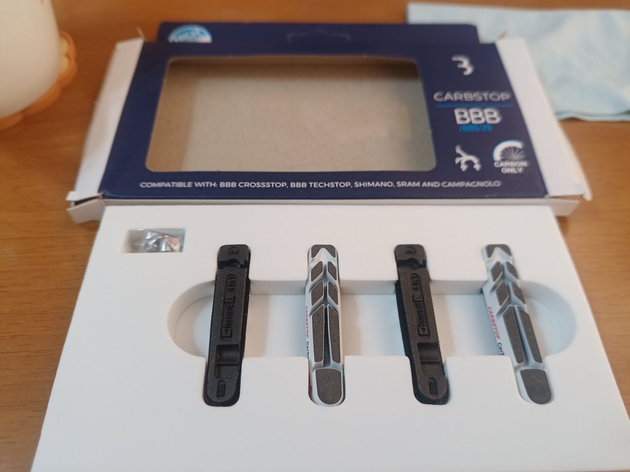 てことで、新しいブレーキシューです。カーボン用はけっこう高いね。