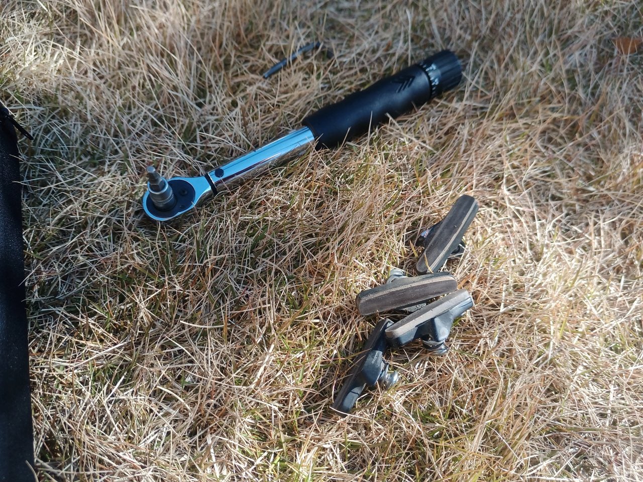セカンドバイクのリムブレーキのブレーキシューが、いつの間にか寿命を迎えており。