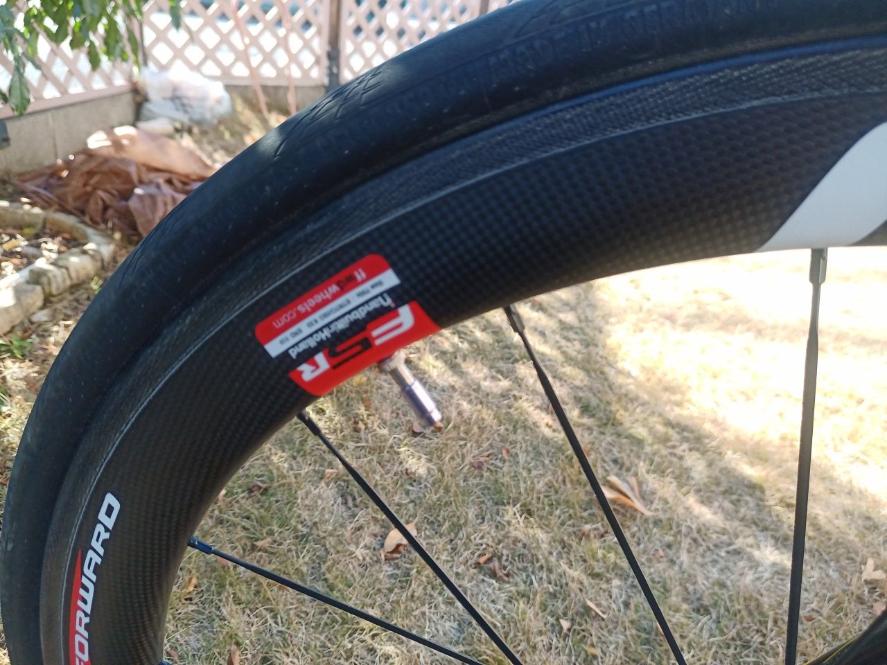 ブレーキホルダーとカーボンホイールが擦って、ホイールに派手に擦り傷を付けてしまいました。
