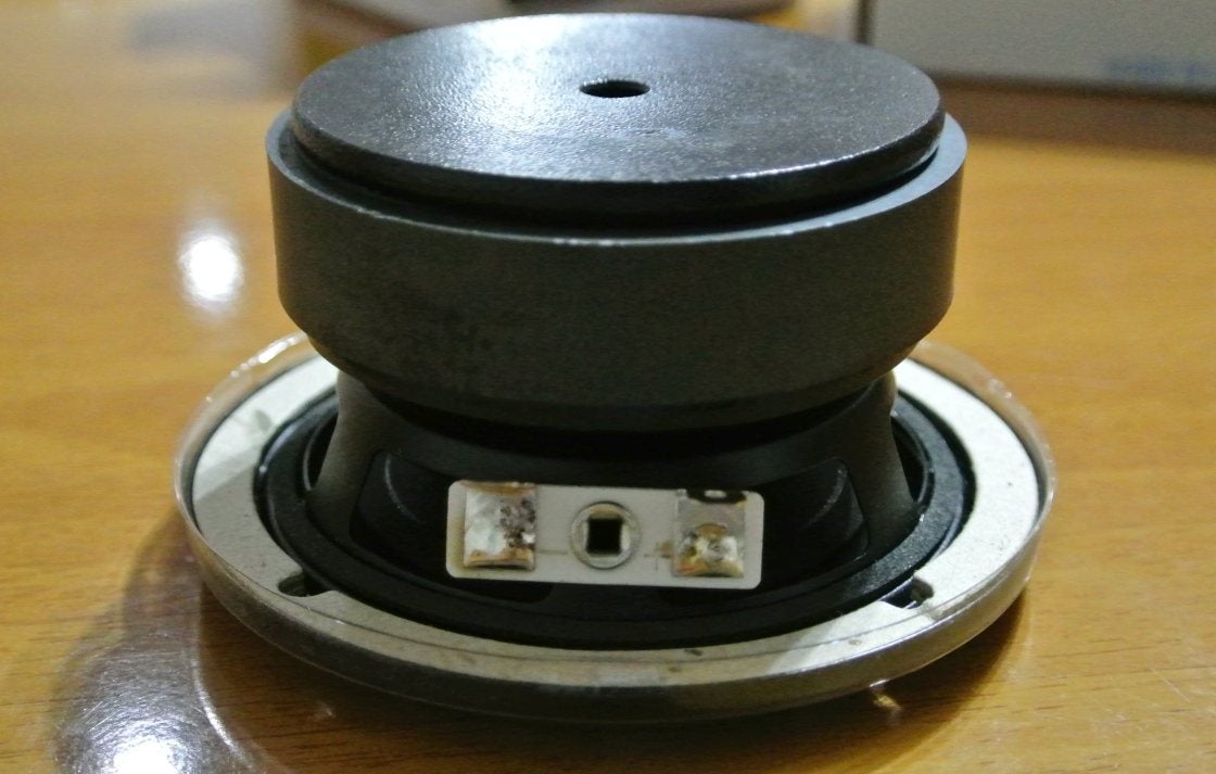 これとペアになるウーファーは、カーオーディオから取り外した Morel MW-142を使います。カーオーディオで無茶したのでセンターキャップが凹んでいますが、気にしない〜
