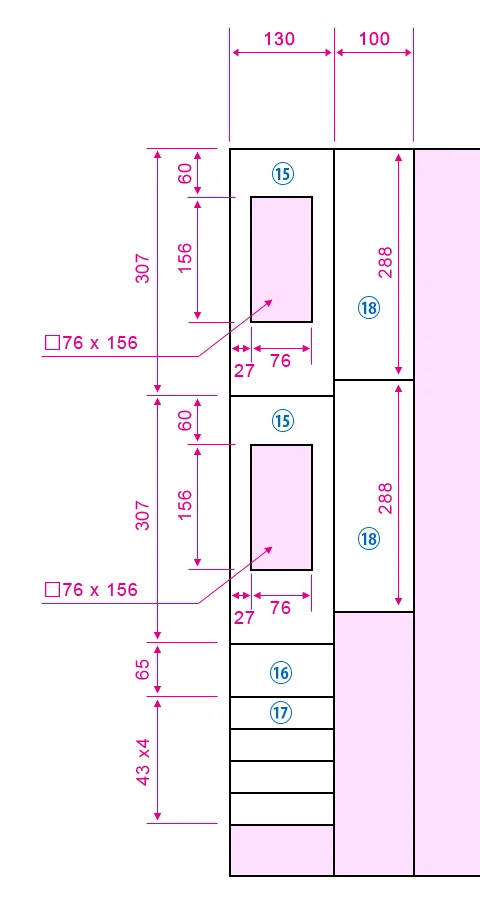 左右スピーカーの完成。バッフル方向から。