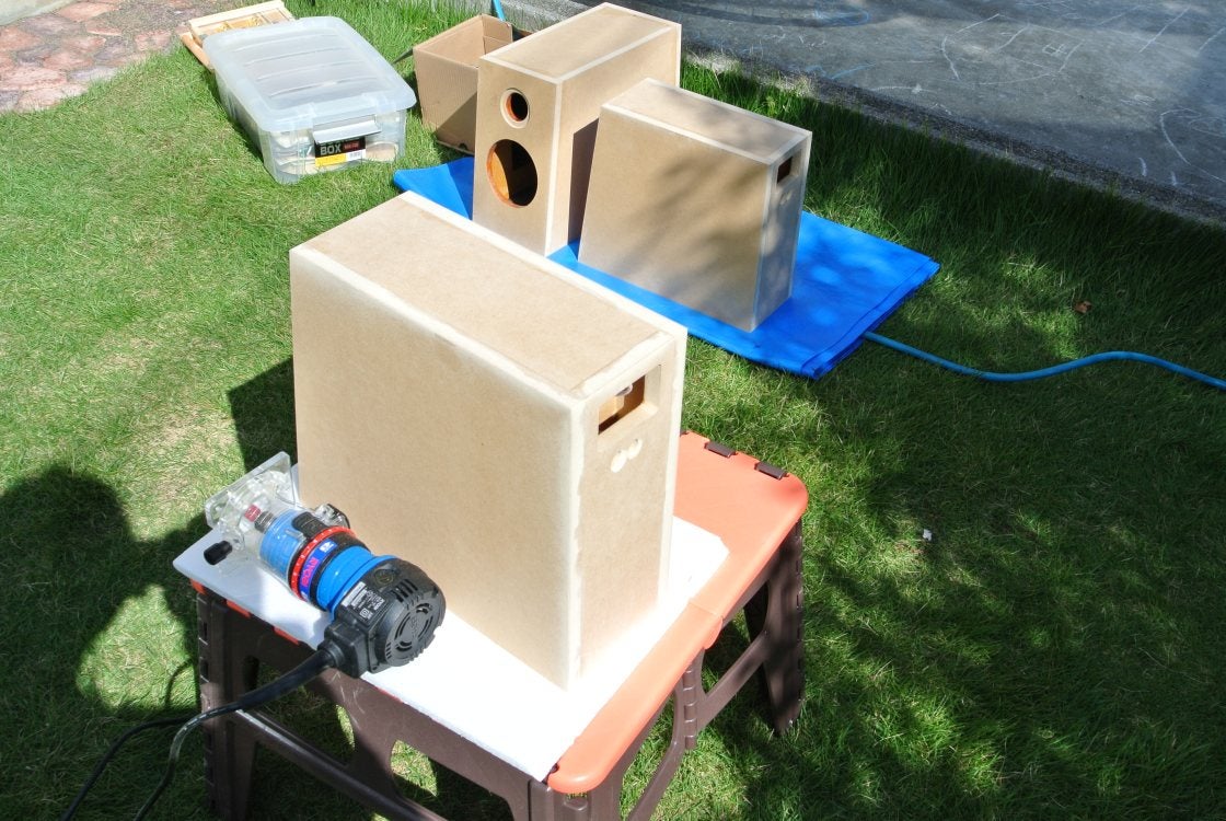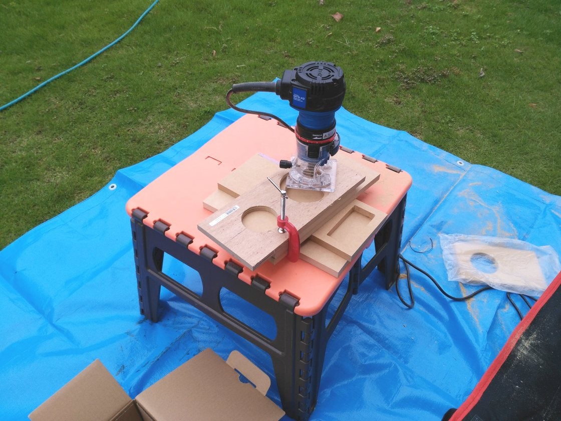 バッフルのスラント(斜めカット)加工もトリマーを利用したら、死ぬほどカンタンでした。