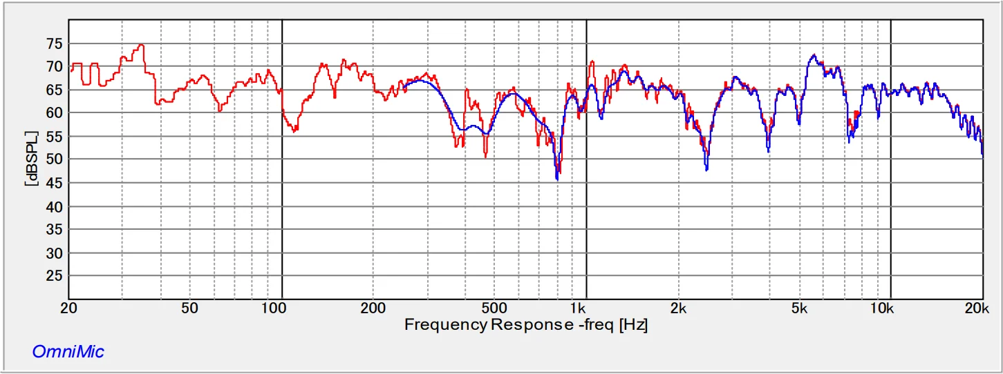 だったら、普通のブックシェルフやミニみたいに、床から持ち上げて計測すればいいじゃん。そのとおり。ただ、こちらのスピーカーはどのみち床に近いこれが使用条件になるということと、床からの低域輻射を想定して設計しています。だから床から離して測定するのもまた意味のない行為になってしまいます。