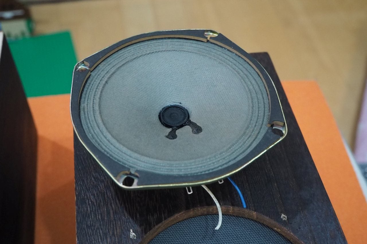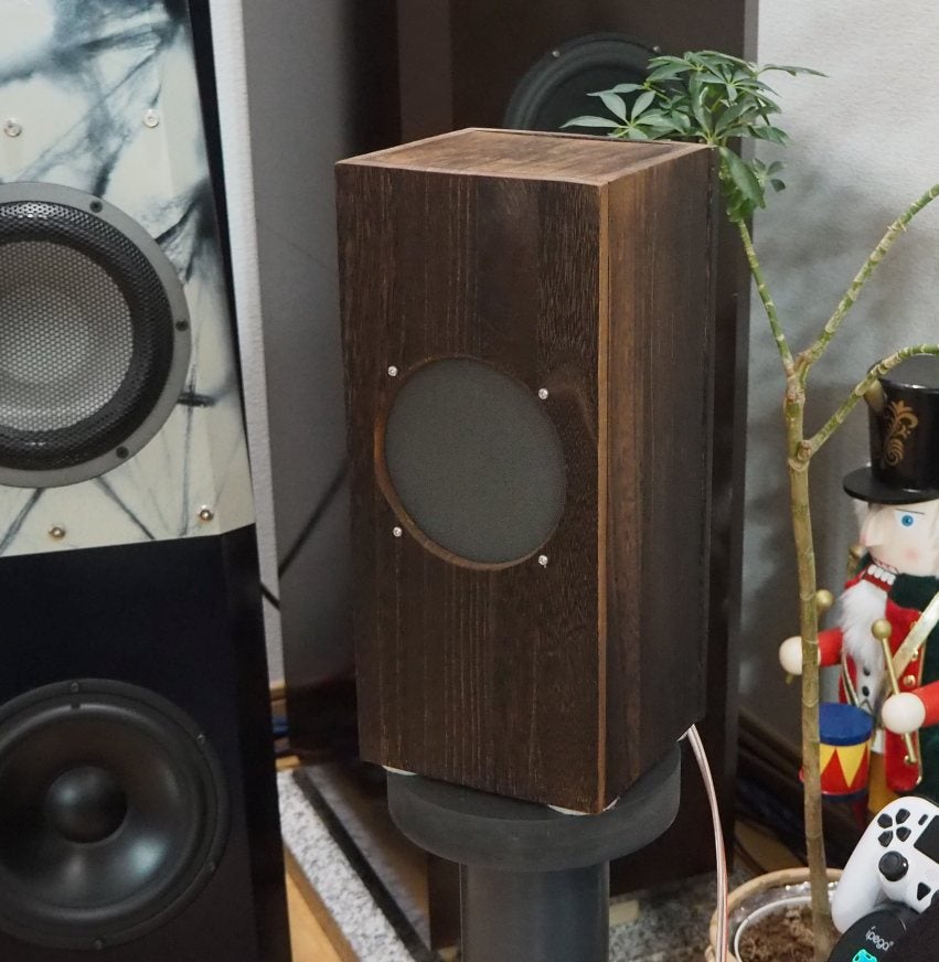 こちらはSONY CF-1490という、昭和のモノラルラジカセから引っ剥がした12cmフルレンジを使ったシステムです。ステレオで2台必要だから、CF-1490のジャンク2台が犠牲になっています。ラジカセのレストアに少しハマってた5-6年前に制作したものです。