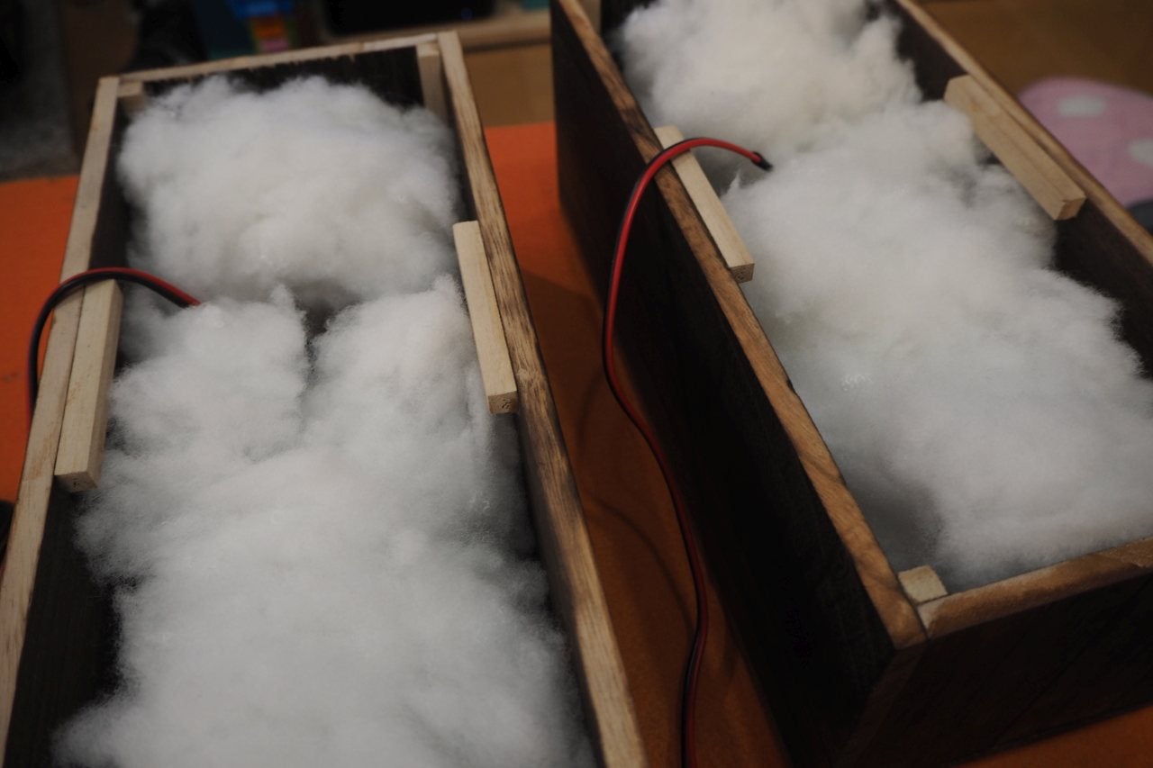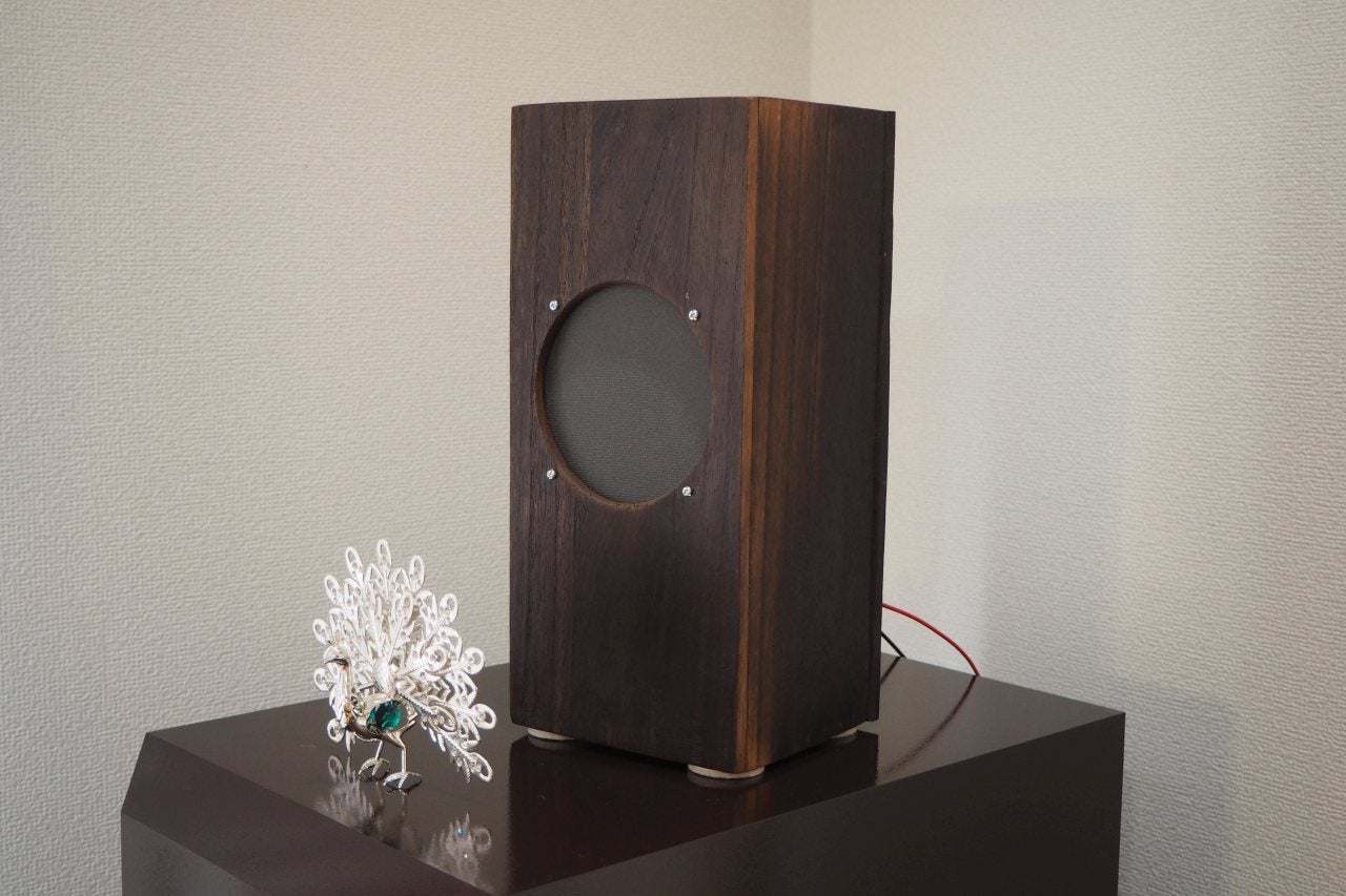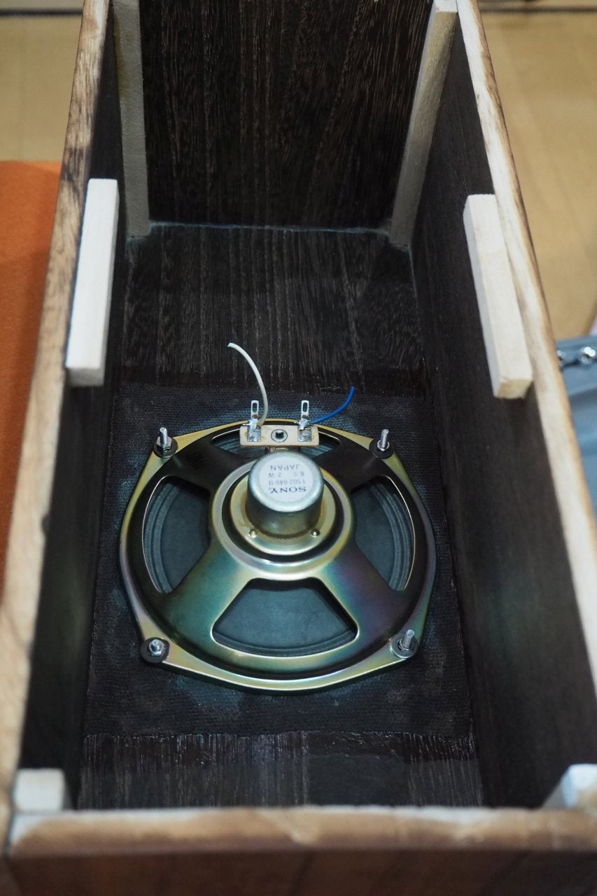 - 中に吸音材をふわりと充填し蓋をする。密閉型だが空気はスキマからダダ漏れ。
