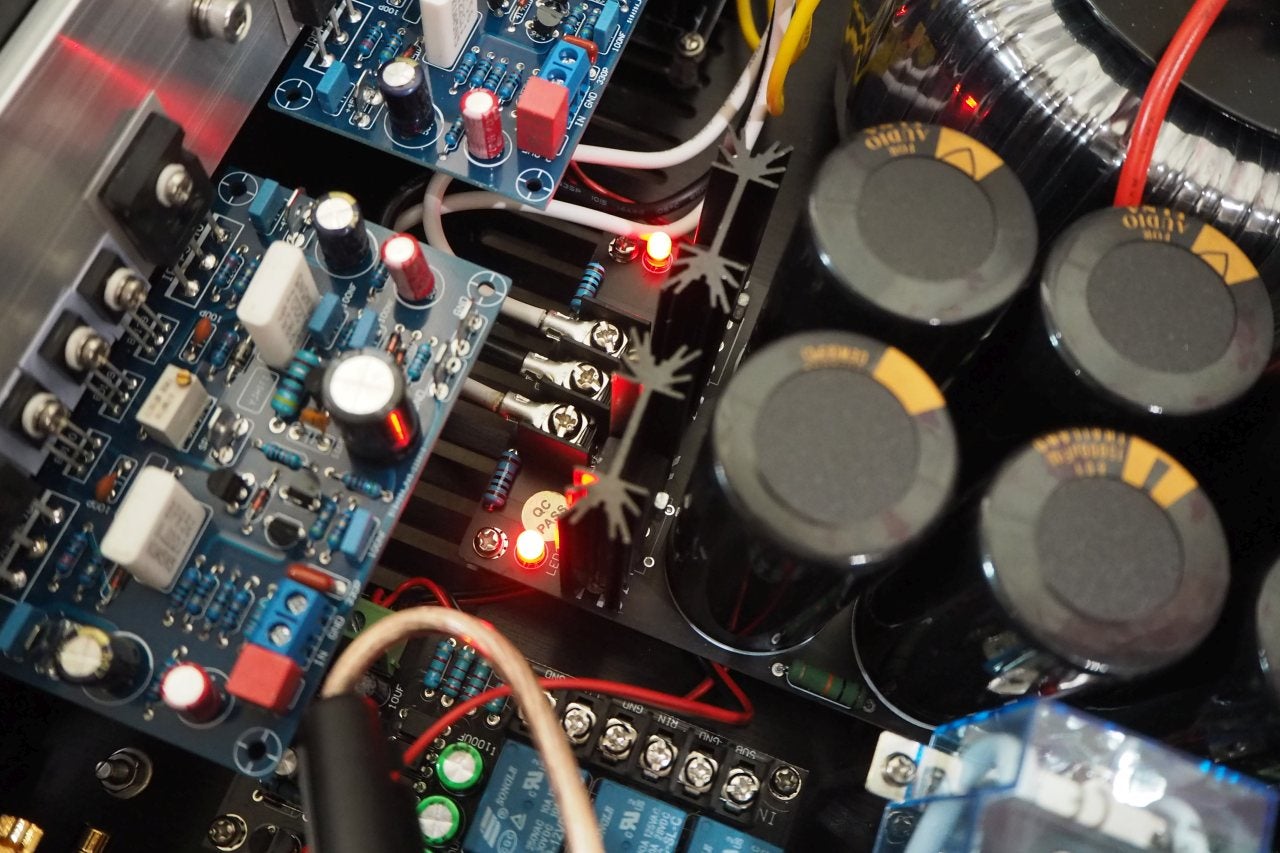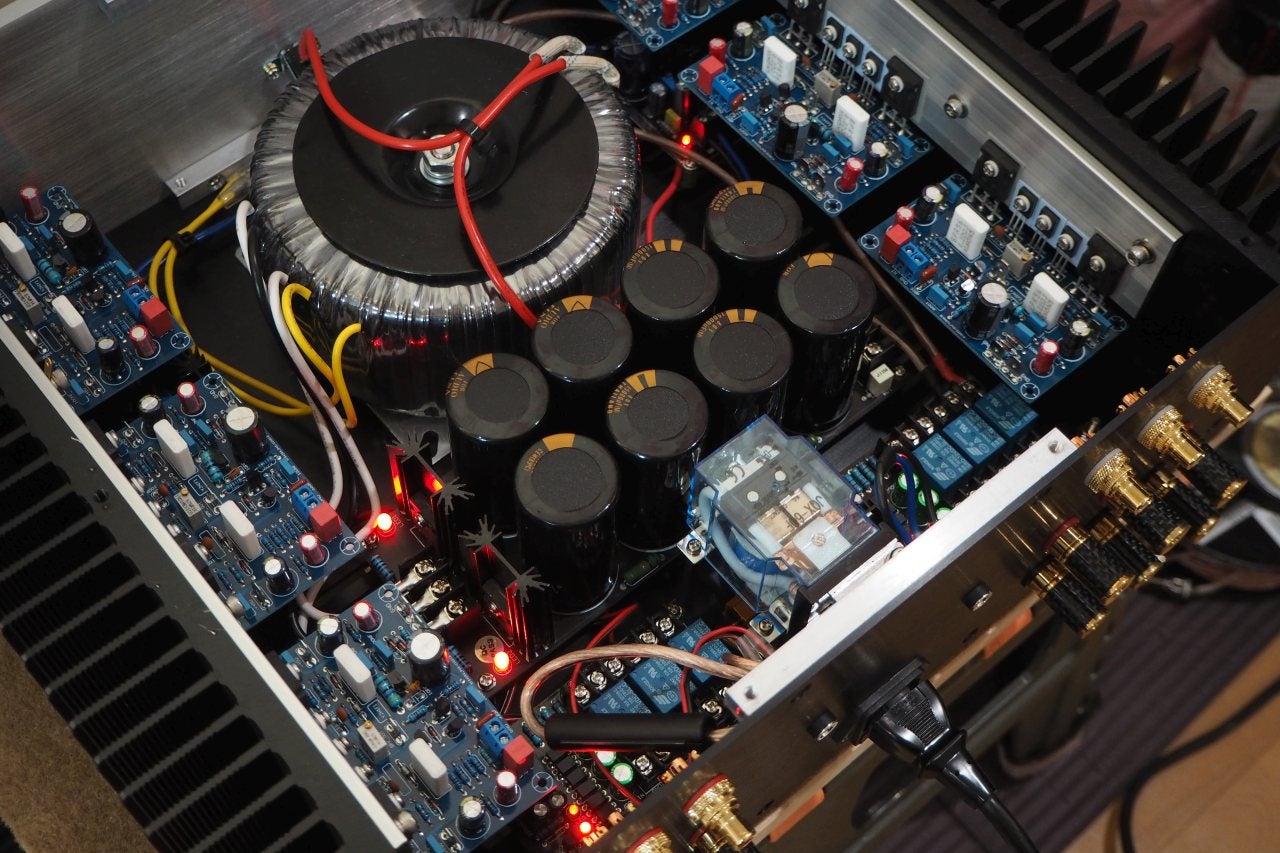 kinsmen0411さんからアドバイス頂いているとおり、このアンプ電源投入の最大の障壁は、電源投入時の突入電流がいかに回避できているかが鍵です。