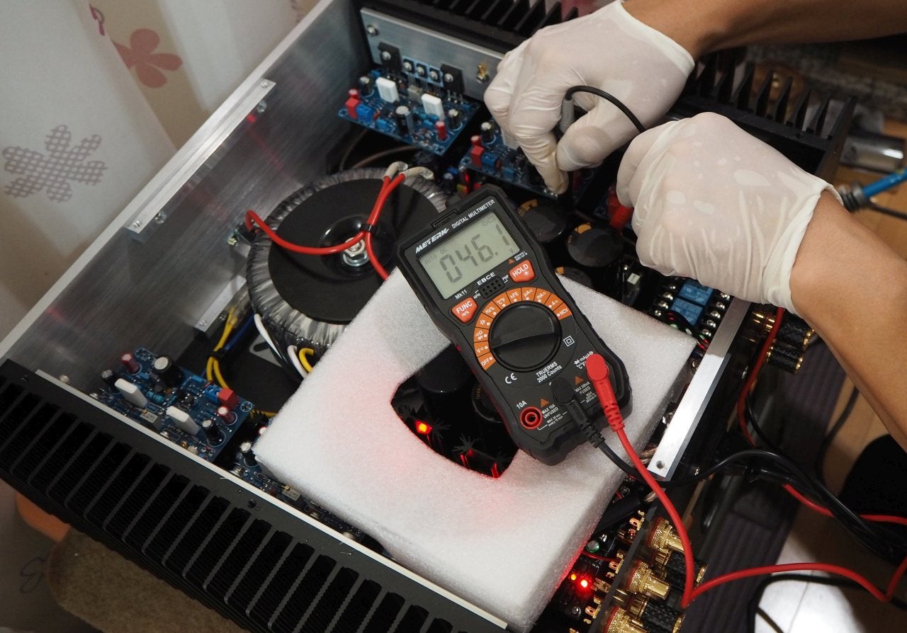 電源までの通電テストは完了しましたので、次は1chずつ電源をつないでバイアス調整とオフセット測定を行います。