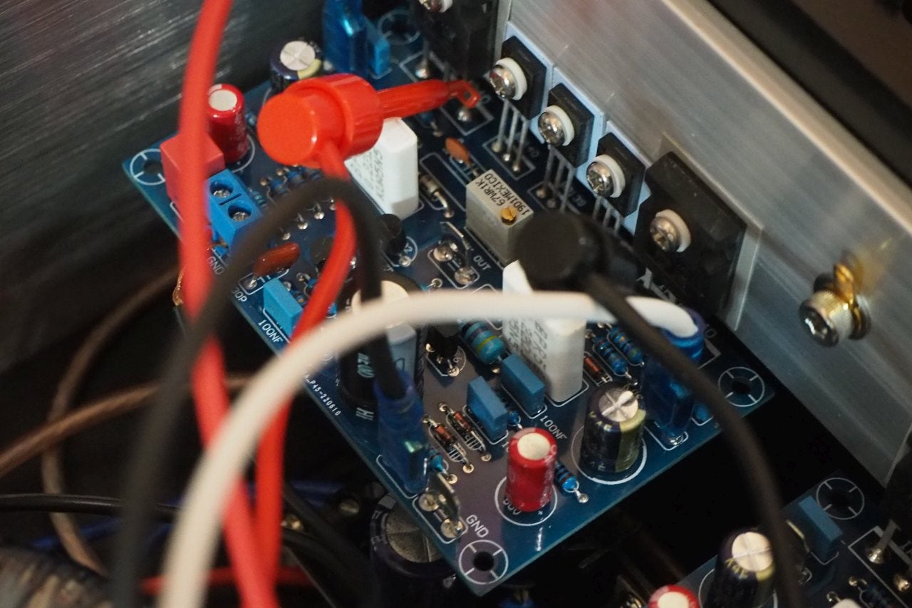 次はアンプ回路1chずつ電源を給電し、バイアス調整し、音出しチェックしてみます。
