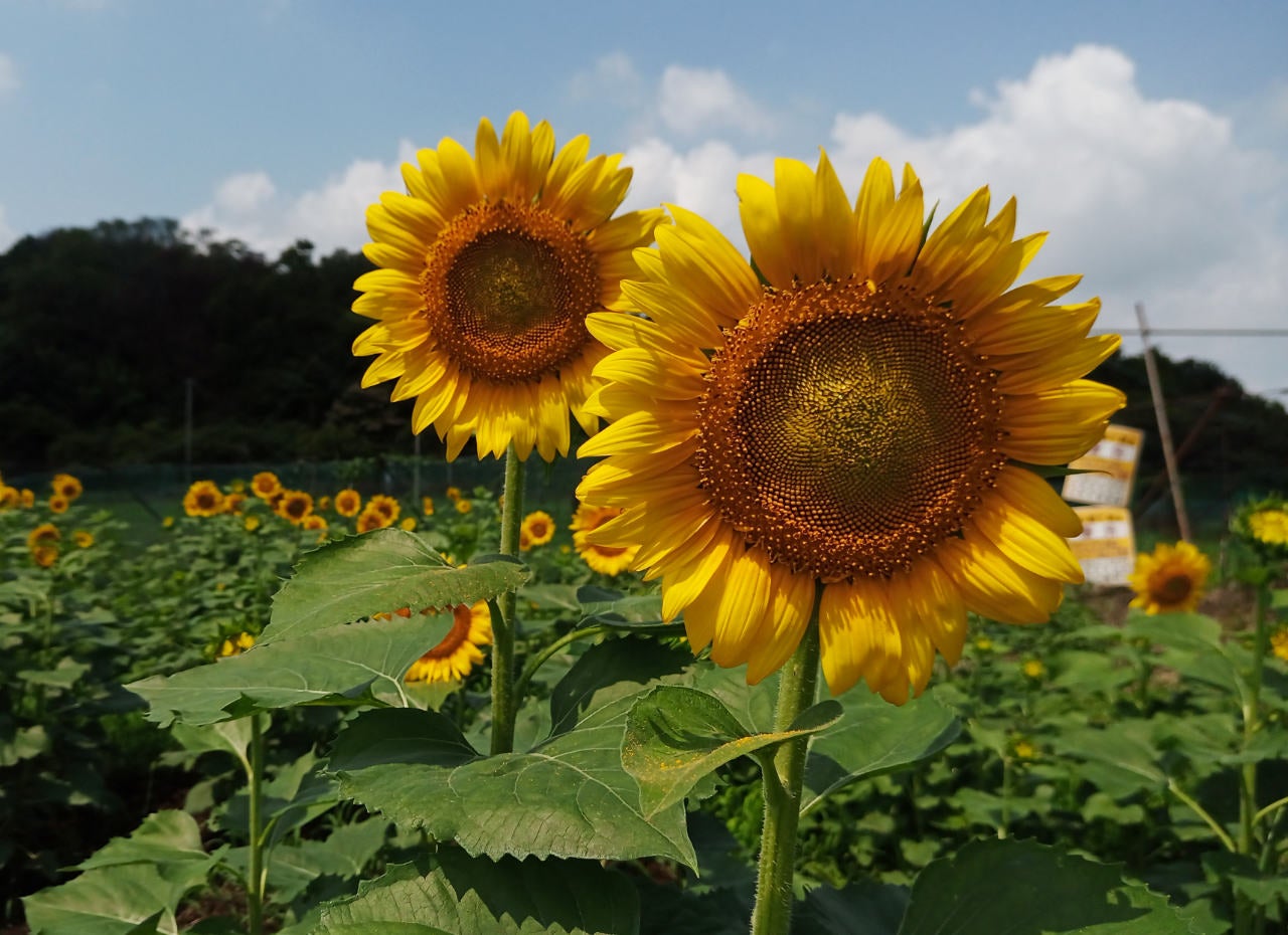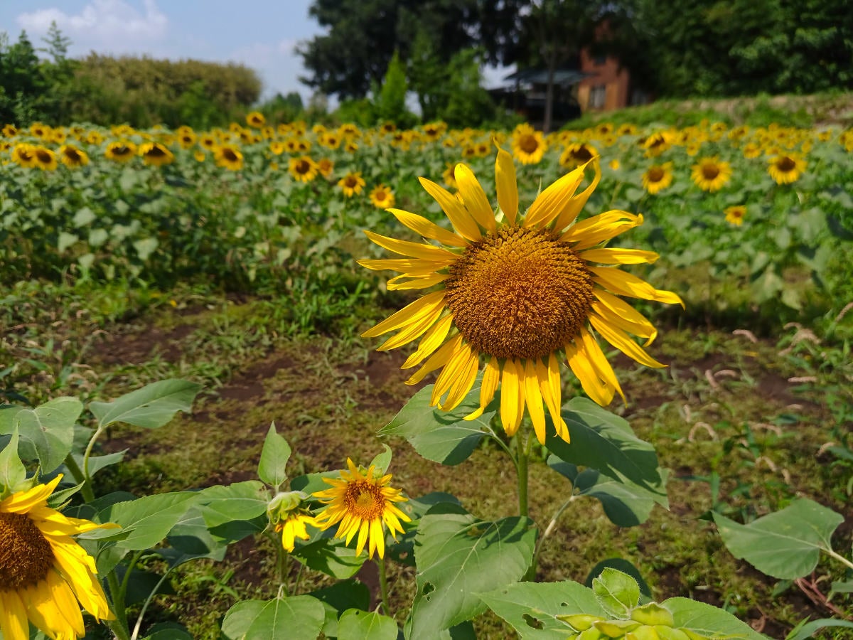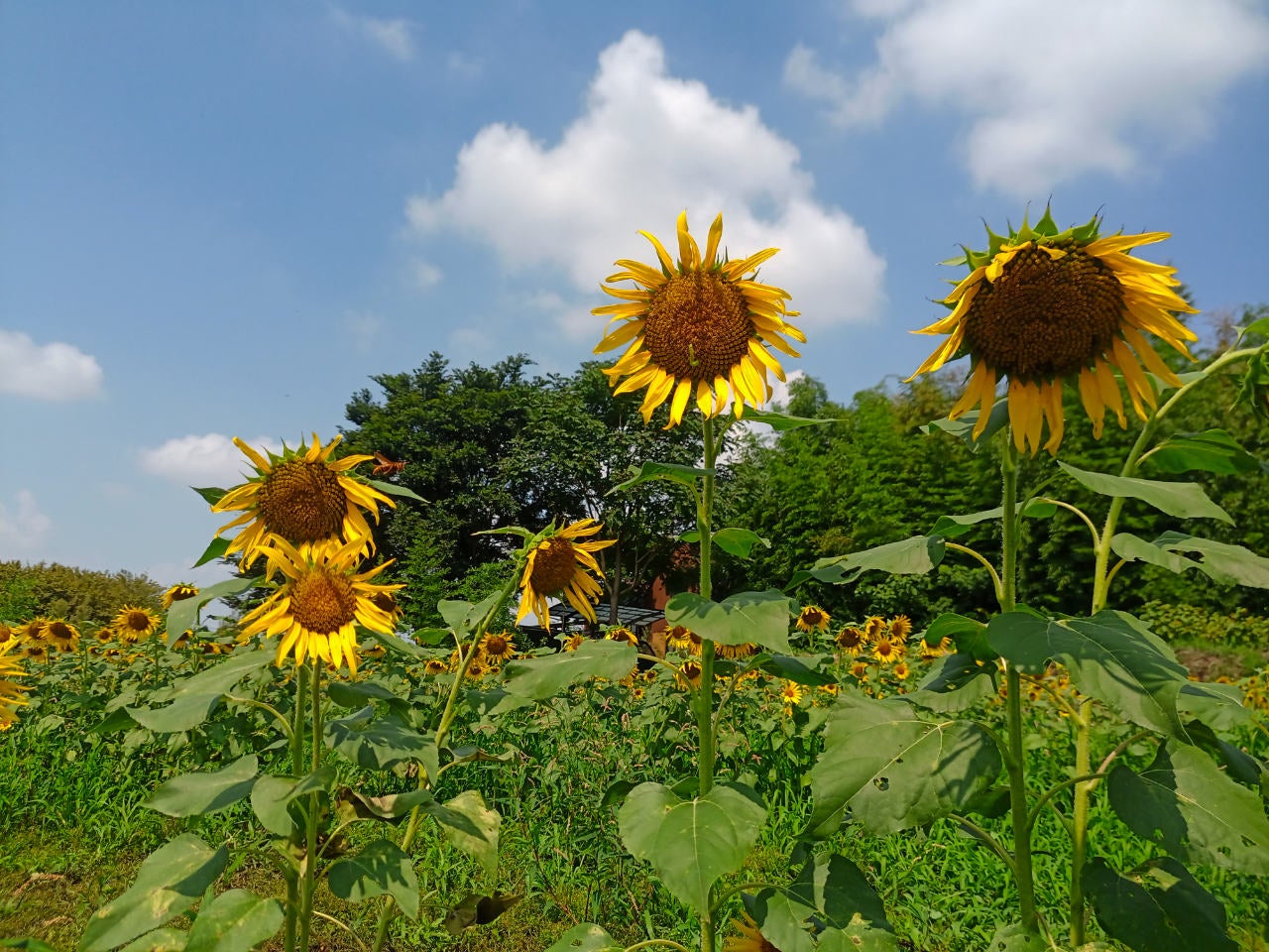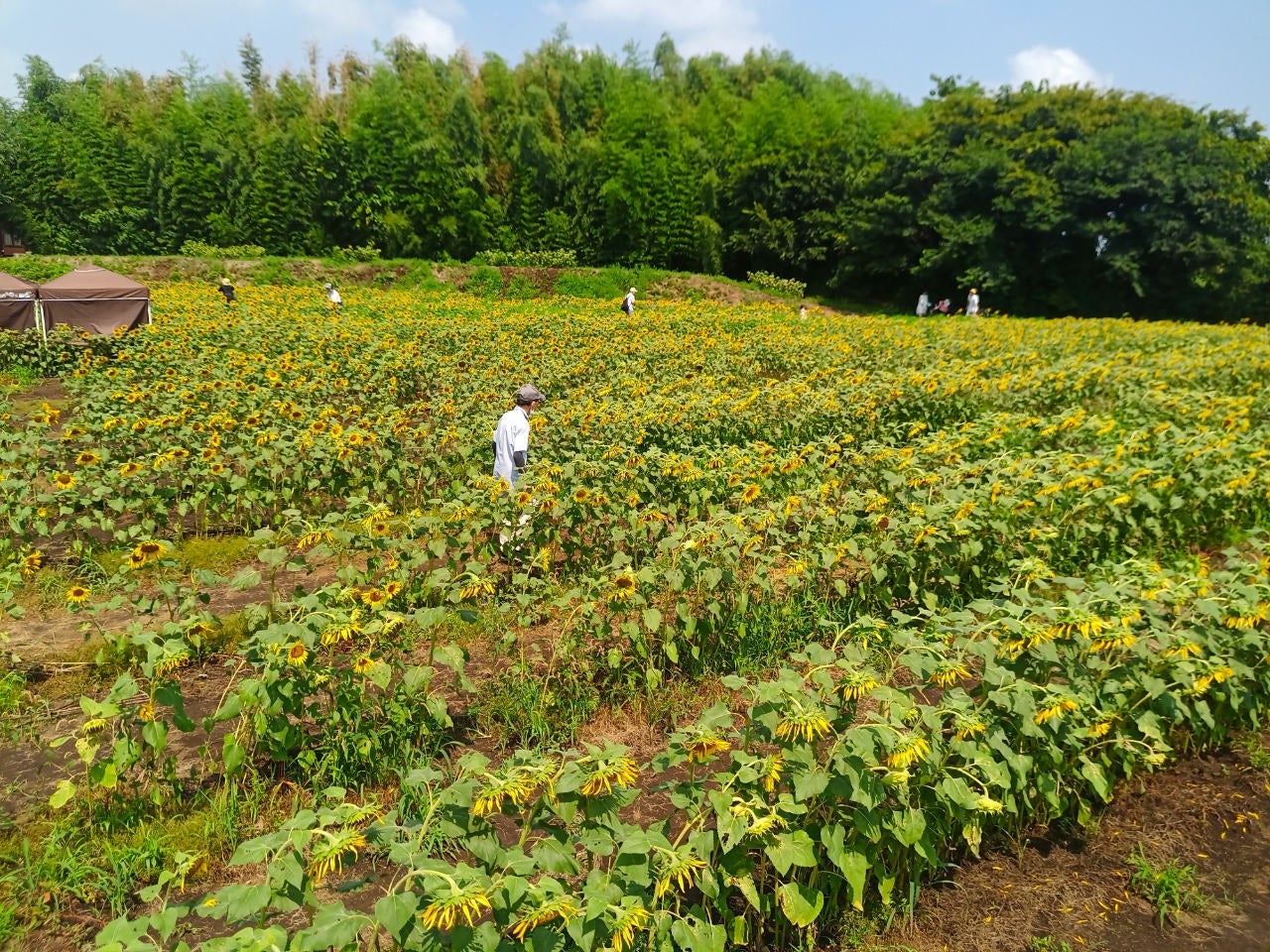 灯台下暗しで、自宅から数kmなのに知らなかった所沢ひまわり畑。まだ間に合うかなということで、午前中の空き時間に突撃しました。