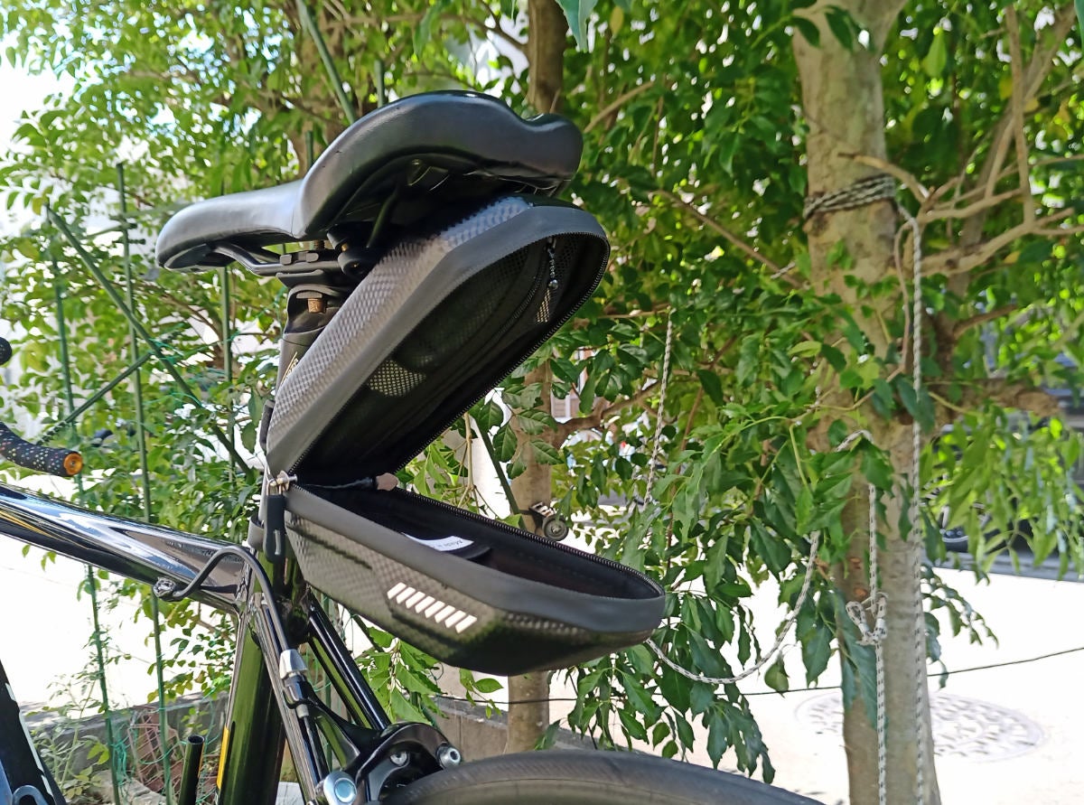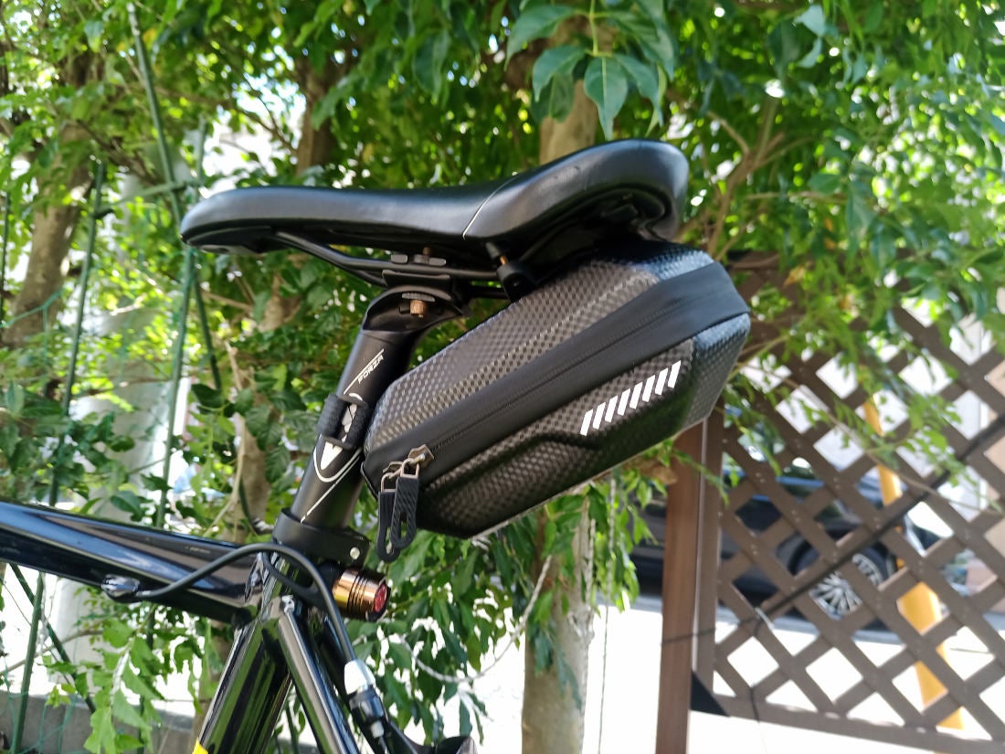 仕方がないので後継のバッグ(というかケース?)を発注し、ようやく届きました。今度も中華製です。ご覧のとおり。樹脂製のサドルケースですね。布製は破けるけど、樹脂製は紫外線で崩落する。どっちが長持ちするのかな。布製の方が耐久性が良い気がするけれど、樹脂製はなんだかカッコウ良いですね。雨にも強そうだし?