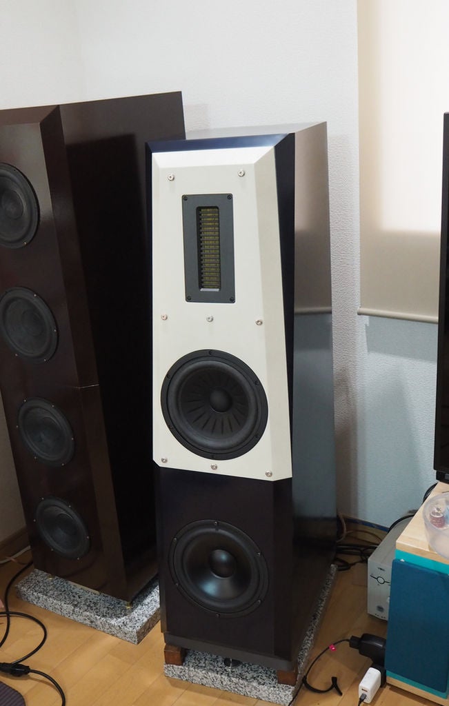 しかしなんと言ってもAMTPRO-4でしょう。950Hzから上をたった1本で受け持ちつつ、原理的には分割振動のないAirMotionTransducerがこのスピーカーの音調を決定づけています。それも、ただ馬鹿みたいにパッシヴクロスオーバーで繋いで鳴らしているのではなく、パッシヴでは難しい音響補正をディジタルドメインで施していることも大きいと思います。AMTが生来持っている弱点を補強しています。