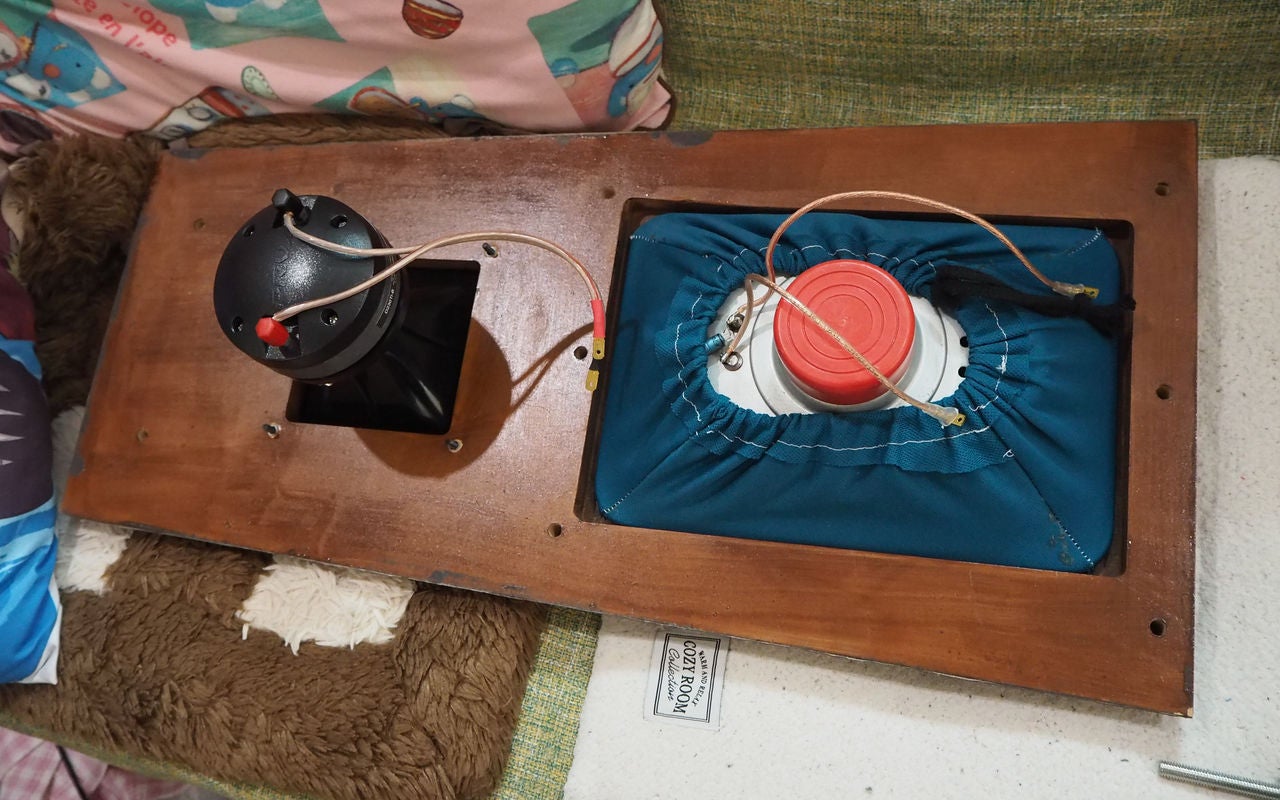 ETONの8-612は本当にいいウーファーです。以前使ってた(Avalon等でよく使われる)ETONのノーメックスハニカムは、音は整っているんだけどどうも抑制されすぎて、音が死んでる・・・とまでは言わないけれど、少し抜けきらない感じがありました。対してコレは、正気に満ち溢れて音楽が飛んできます。でもこれは950Hzまでしか使っていない事も理由かも?(一方、限界音量では少し荒さが出るというか。アルミコーンなどに比較すると少しハーシュネスを感じ始めます)