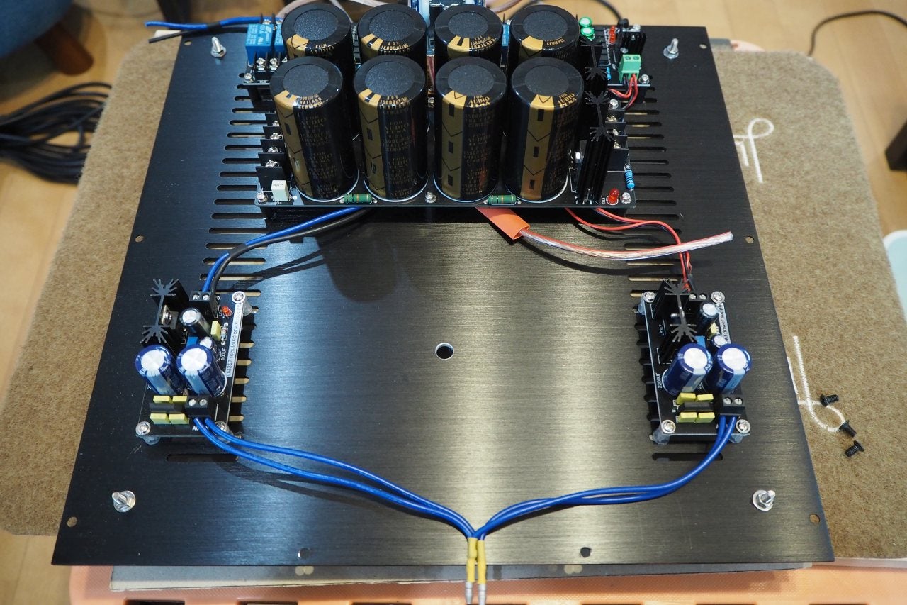 で、アンプの方も音も落ち着いてきたので、まずはアクティブクロスオーバーのDSP-408にリニアレギュレータを充てがって聴いてみようかな?と。
