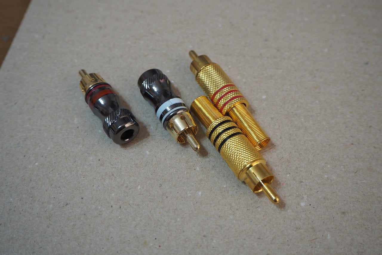 RCAプラグも手持ちのテキトーなモノを使います。手持ちがないから不揃いです。