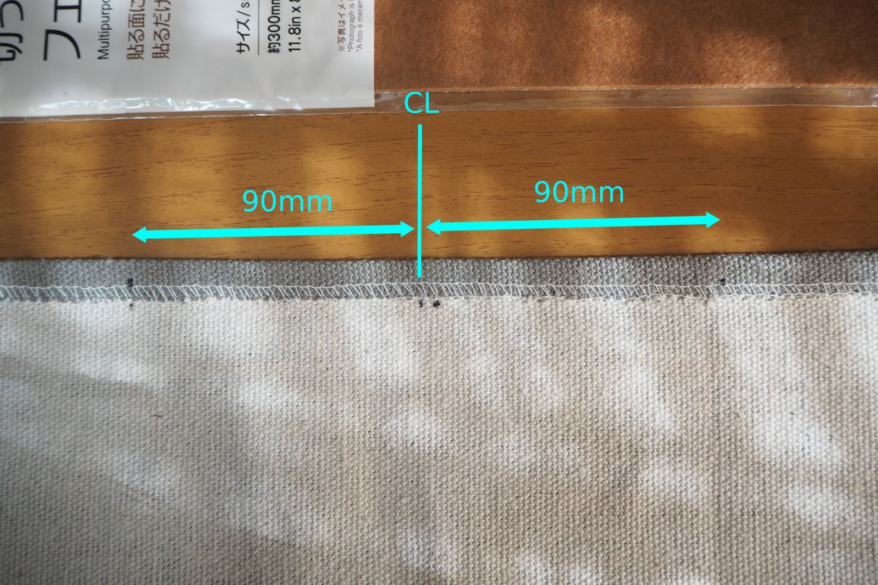 その木材の上から、養生用にフェルトシートを測って貼ります。これはシール付きのやつだから貼るのも容易。