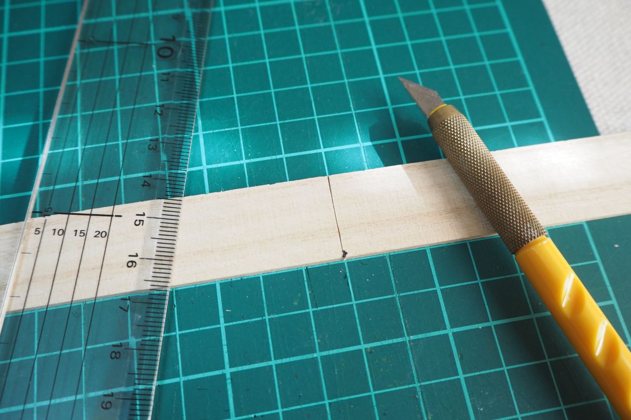 さて、次には上部補強用の木材を切っていきましょう。これは定規で測るのではなく、現物合わせで測るのが一番です。