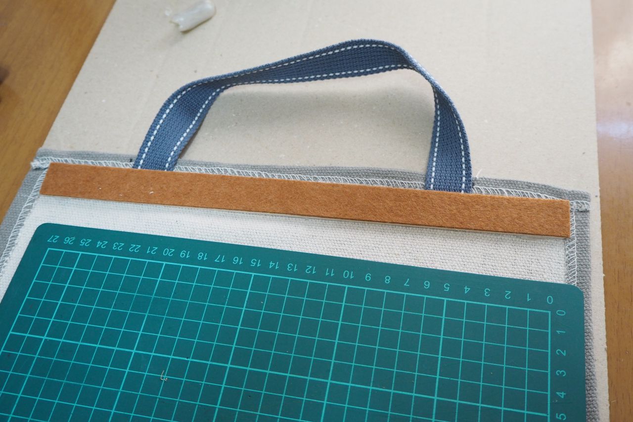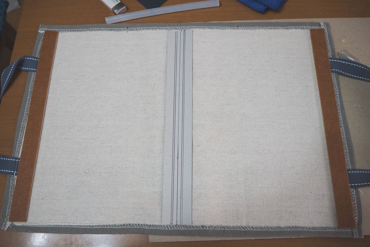 さらにボール紙の上から、養生用にフェイクレザーを貼りました。