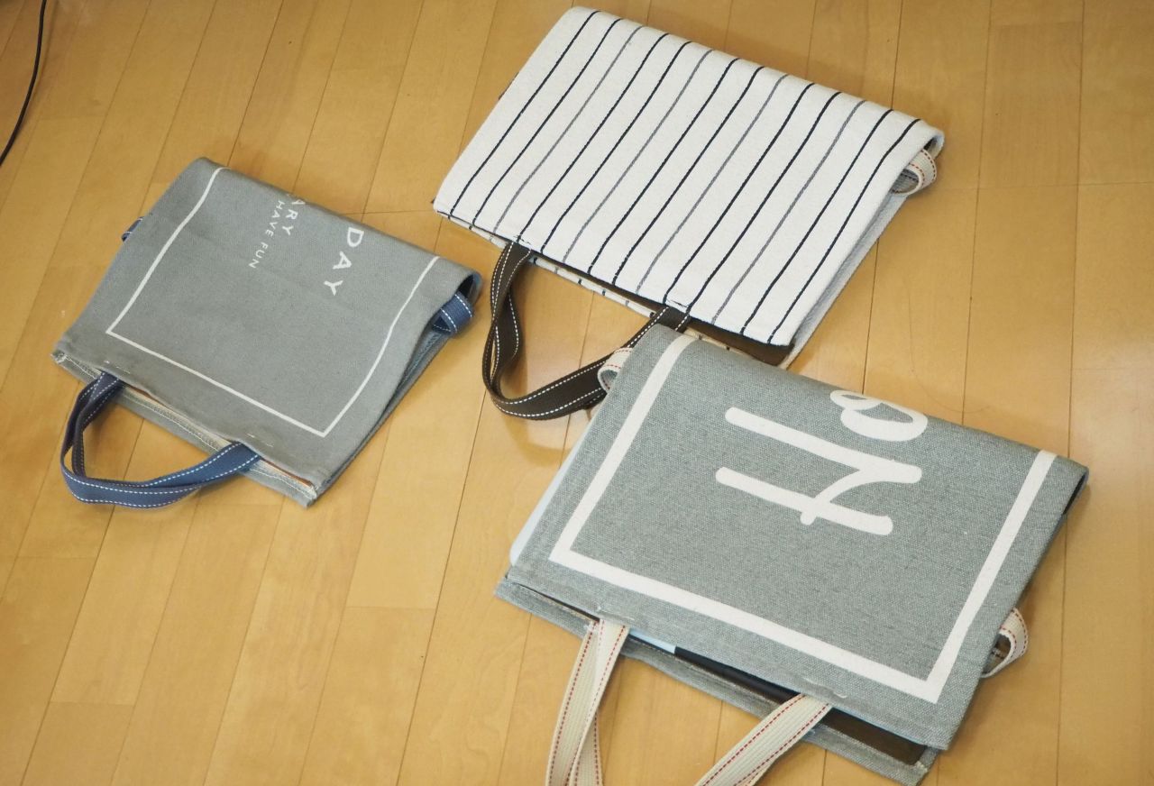 主材となったこのセリアのコットンマット、本当に優れもので重宝します。ただ残念ながら全店舗で売っているわけでもないようです。さらに、柄ももっと多彩にあったら良いんだけど、店舗によって柄、サイズ、在庫も限られているようです。見かけたら1枚ゲット必須ですね。