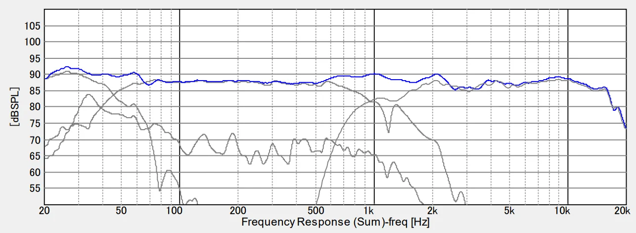 GammaはAir Motion Tweeterが1kHzから上~を受け持つという極端な構成です。にも関わらず、こうしてみればやはりMidBassの受け持ち帯域は最も広く、基音帯域であることからも音質に大きなインパクトがあるであろうと推定できます。