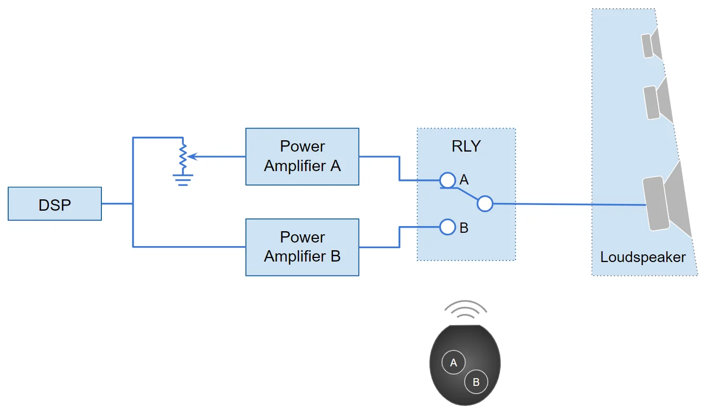 「A」ボタンが6ch MOS-FETアンプですよ。そして「B」ボタンがMERIDIANです。