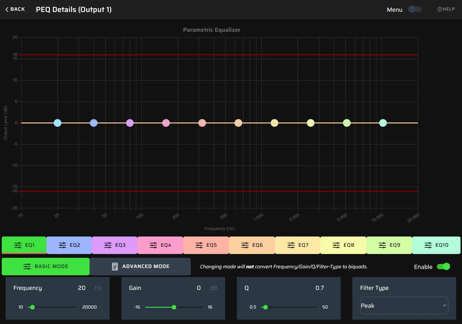 ドライバーの特性補償には、PEQ(=パラメトリックイコライザ)という機能を用います。