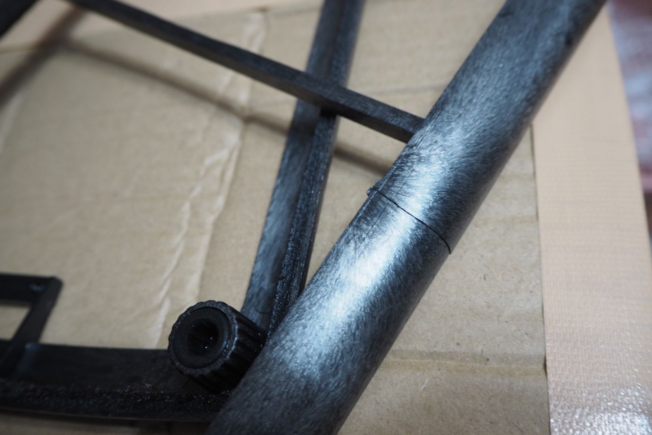 サランネットの骨組み(フレーム)も割れてます。それも、L-Rともに同じ箇所が。(笑)サランネットは部分的に破けていたしキモチワルイので、全部剥がして捨ててしまいました。手持ちの新品サランで張り直します。実は沢山在庫もってます。