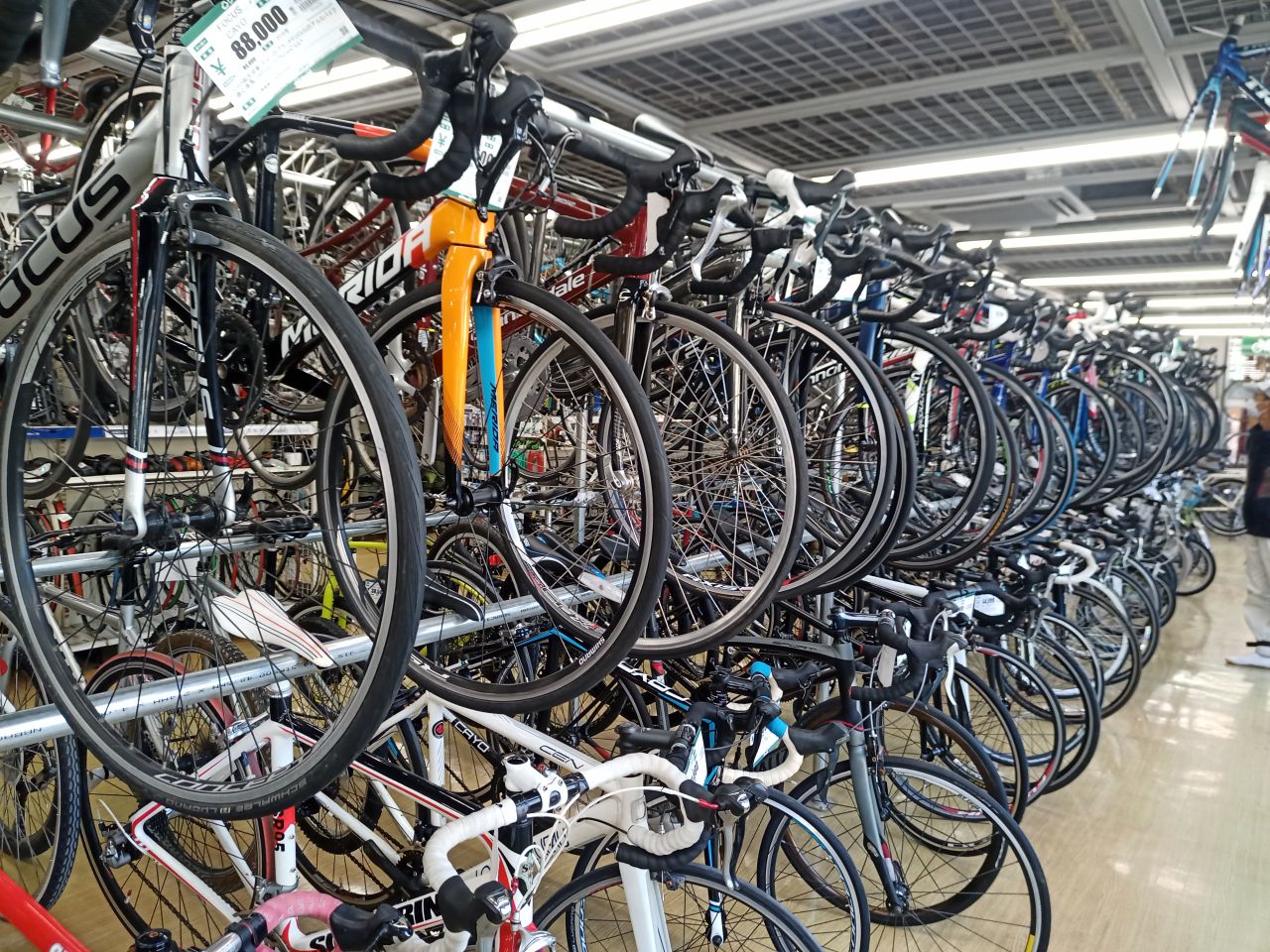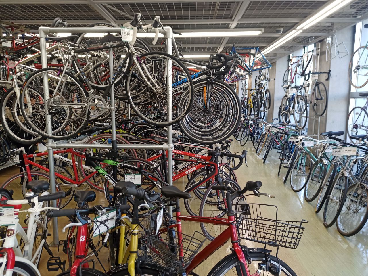 で このオフハウス店舗、、、なんと1フロアまるまる自転車フロア というのが在るのです。