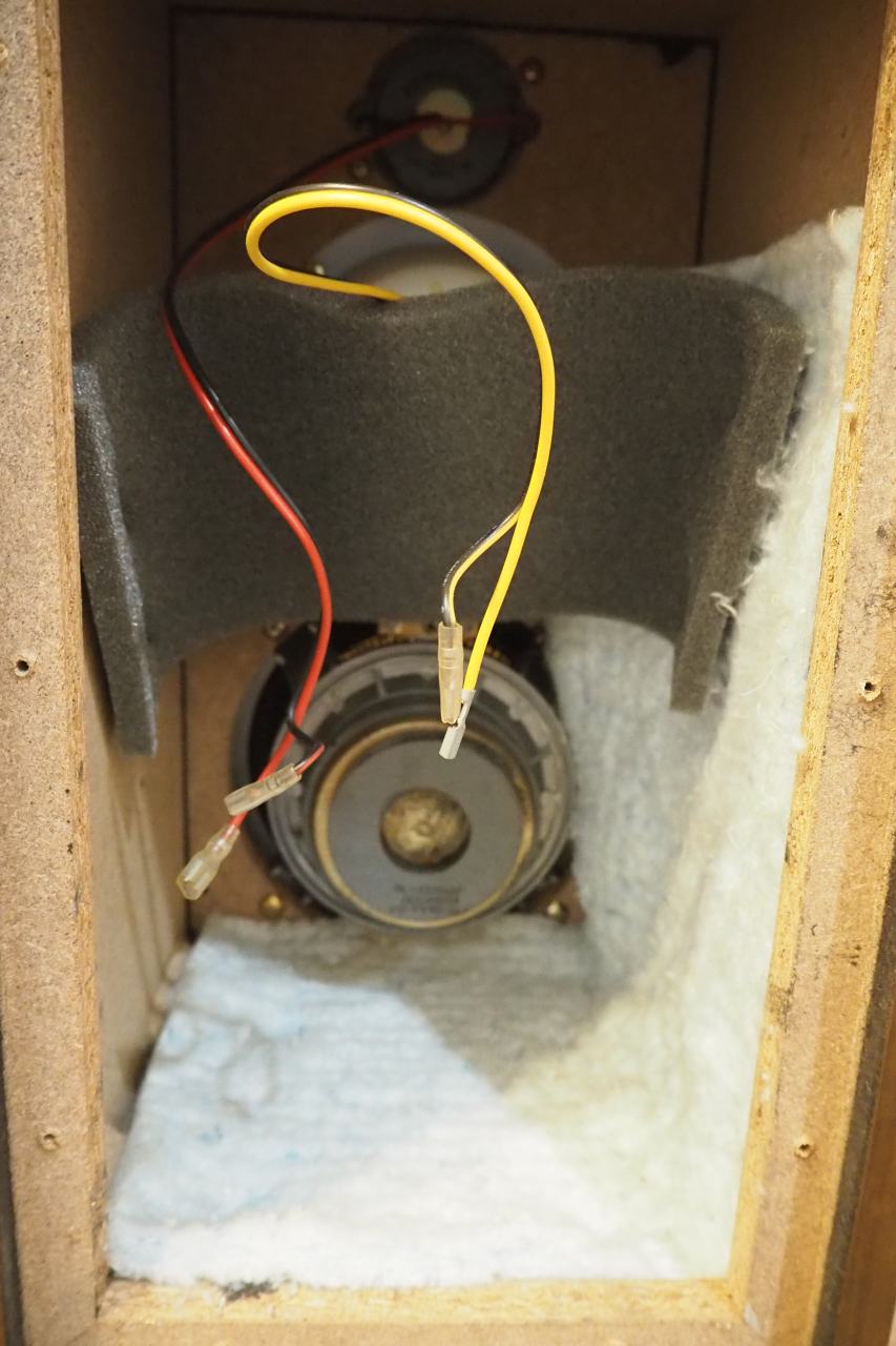 このミッドレンジ、1kHz-5kHz(公称)なんですよ。せっかく造作が良さげで大口径なミッドなのだから、もう少し低い方まで持たせたいです。そこもミッドのFsを実測後、チャレンジしてみたいと思います。クロスが高めなのも「コスト」が関係していると思います。クロスが下がるとインダクタもキャパシタも一挙に容量が上がり、コスト的に破綻するのです。ローコスト品はたぶんエンジニアリング的にも色々無念な妥協をいっぱいしていると思います。