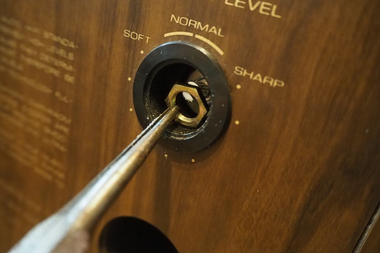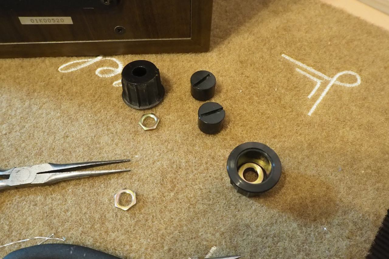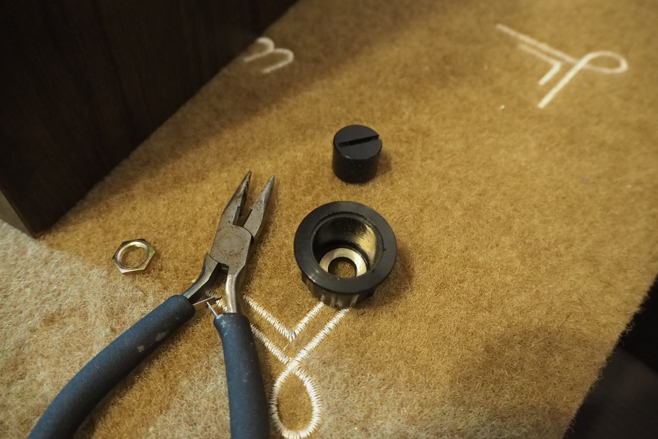 しかし、よく考えるとメーカーの人達もこのツマミを外せないと困るのではありませんか? 少なくともメンテナンスが出来ないハズ。一般的ではないだけで、このツマミを外すために何らかの治具が存在するのでは??