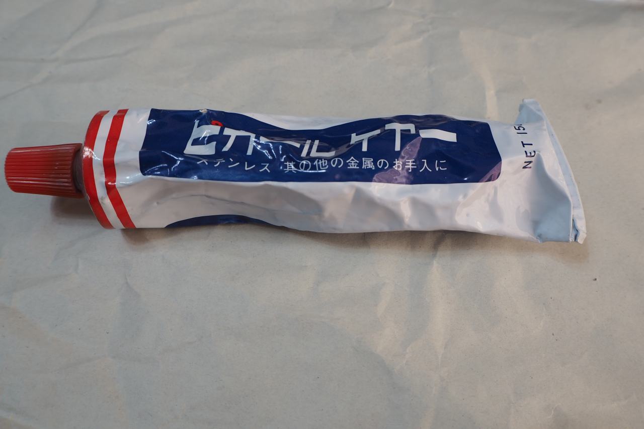 でもまだフランジがくすんでいます。打ち傷、溶剤痕、取り切れない汚れがある。ピカールで磨けば美しくなるでしょうが、、、さすがにこの個体にそんな労力を掛ける気にはなれない。