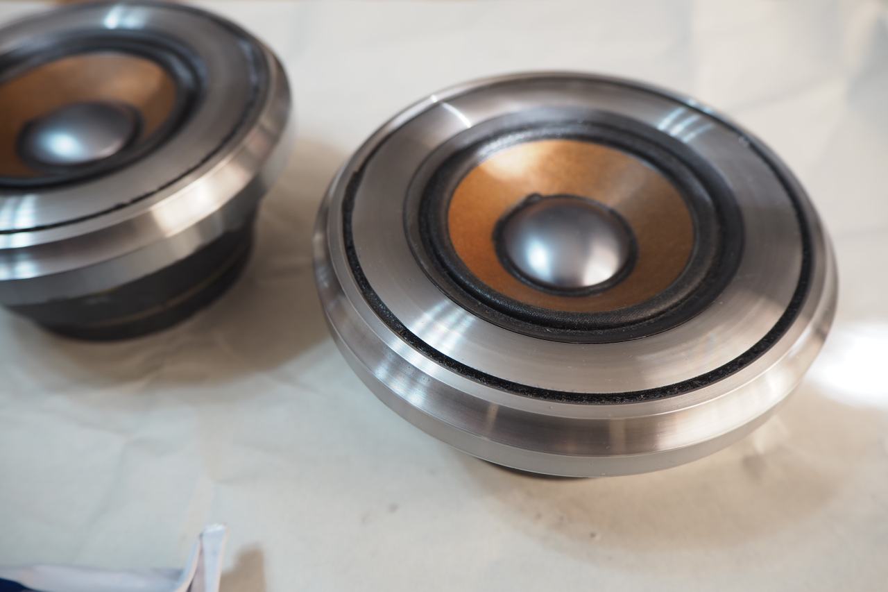 バランスが取れないから、トゥイーターとウーファーのフランジも磨きましたよ。ピカールまでは行かないけど、徹底清掃しました。黒ずみがいっぱい出ました。トゥイーターのメタルネットは外すつもりがないので、中身はブロワーでホコリを吹き飛ばすだけで我慢しました。トゥイーターにはミッドレンジほどの埃の堆積は無かったのです。