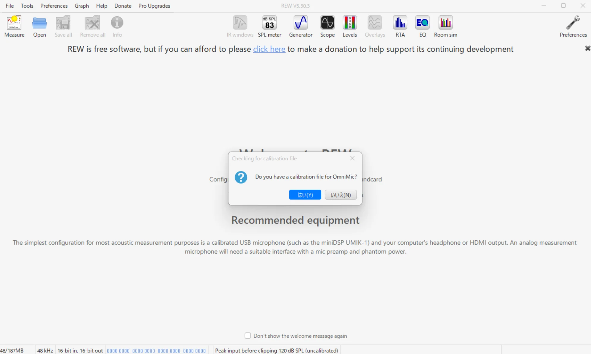 REW = Room EQ Wizard、今のところ完全なフリーウェアです。フリーウェアではあるが、寄付は歓迎という形式になっています。