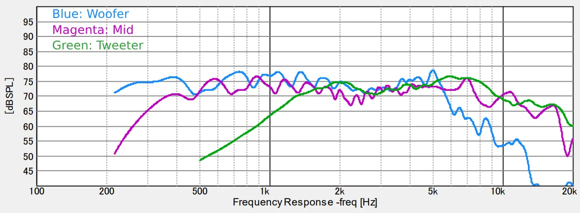 以下、それぞれウーファー、ミッド、トゥイーターを測定した結果です。