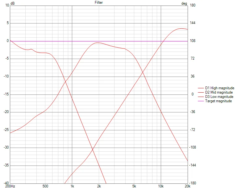 前述した個別調整ではなく、「5kHz-15kHz間フラット」のターゲットを設定し、オプティマイザで自動調整させたっていいんです。しかしそんなことをしたところで、どの道、手持ちパーツの制約で調整限界があります。